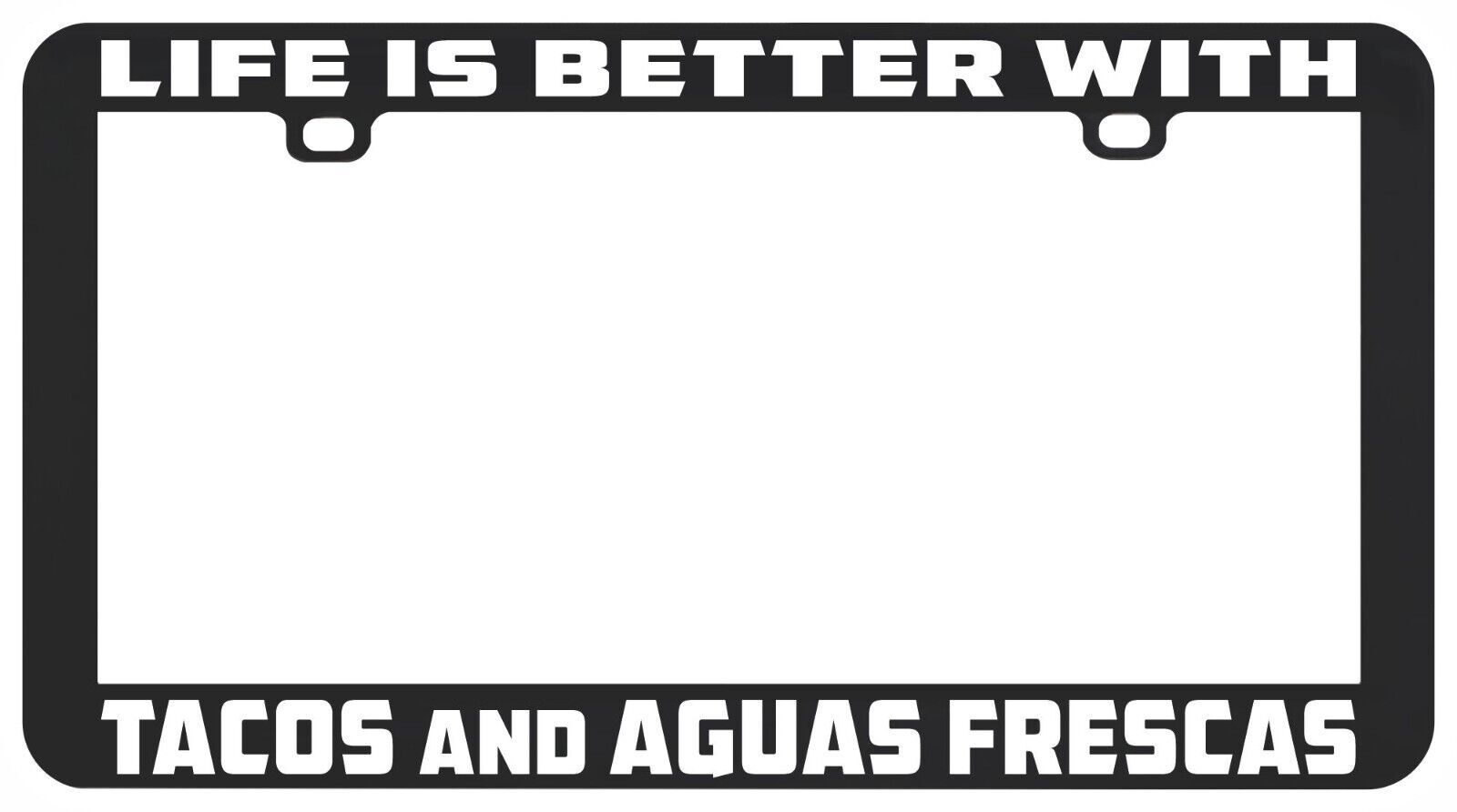 LIFE IS BETTER WITH TACOS AND AGUAS FRESCAS LIQUOR FUNNY LICENSE PLATE FRAME