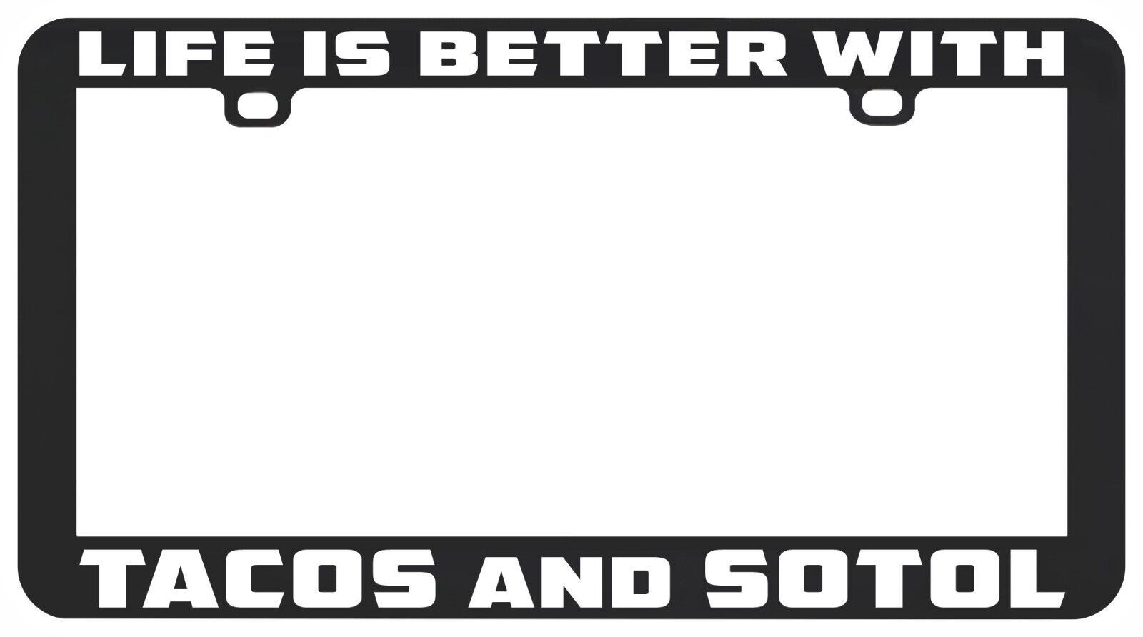 LIFE IS BETTER WITH TACOS AND SOTOL LIQUOR FUNNY LICENSE PLATE FRAME