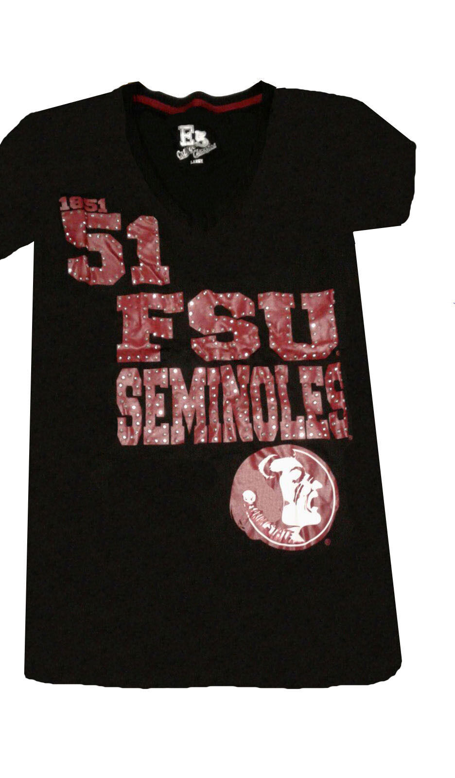 Descripción del producto: Camisa negra de Florida State University Seminoles 1851 para mujer Muestre con orgullo su compromiso con la Seminoles del estado de Florida con este Camiseta negra FSU Seminoles 1851 para mujer de Clásicos universitarios E5. Detalles: Marca: Clásicos universitarios E5 Equipo: Seminoles del estado de Florida Color: Negro con estampado rosa en la parte delantera 100% algodón Cuello en V Mangas cortas FSU impreso en el lado derecho del hombro 1851 FSU Seminoles impresos en el frente 100% autentico A estrenar con etiquetas Producto colegiado con licencia oficial El 17-17 de febrero a las 10:06:02 PST, el vendedor agregó la siguiente información: