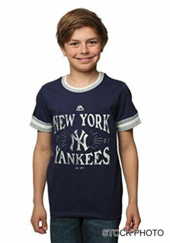 Majestic New York Yankees Ragazzi Rotondo Tee Collo, Blu, Grande