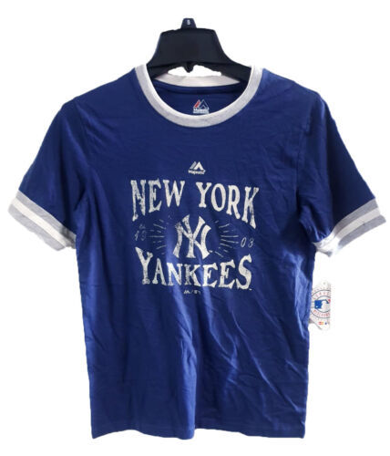Majestic New York Yankees T-shirt girocollo per ragazzi, blu, grande