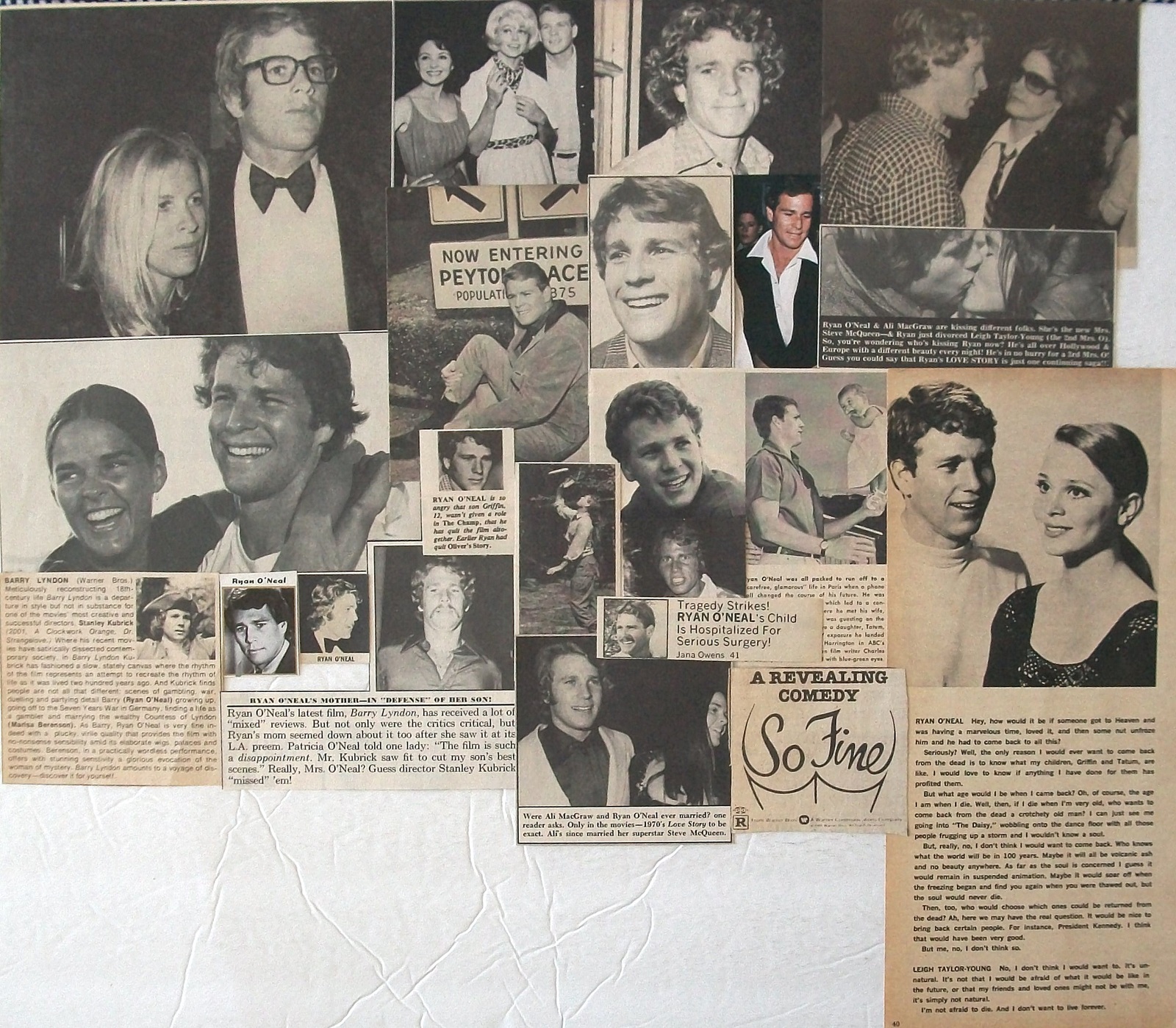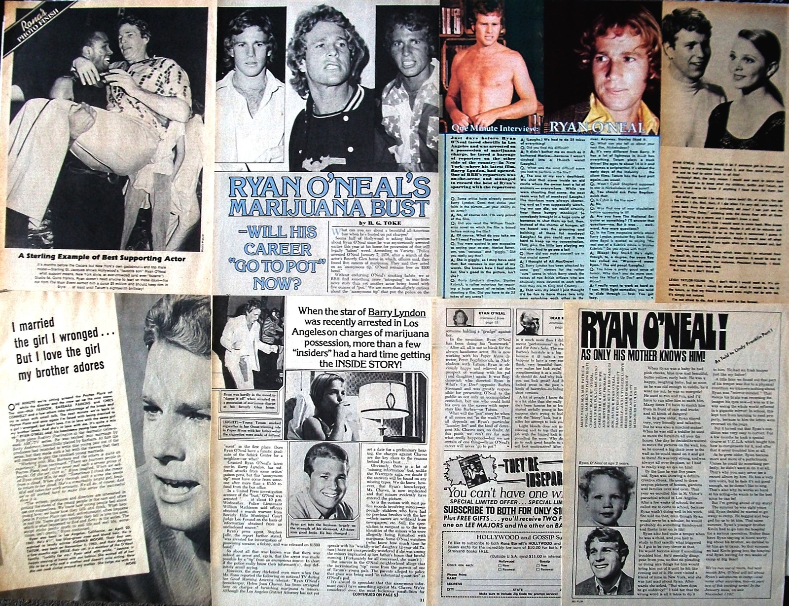 RYAN O'NEAL ~ Thirty (30) Color, B&W Clippings, ARTICLES, Pin-Up from 1964-1979