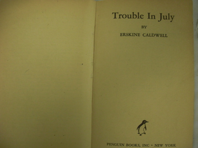 Trouble in July: written by Erskine Caldwell, C. 1940, Sixth Printing September,