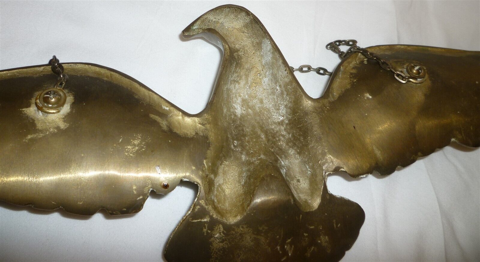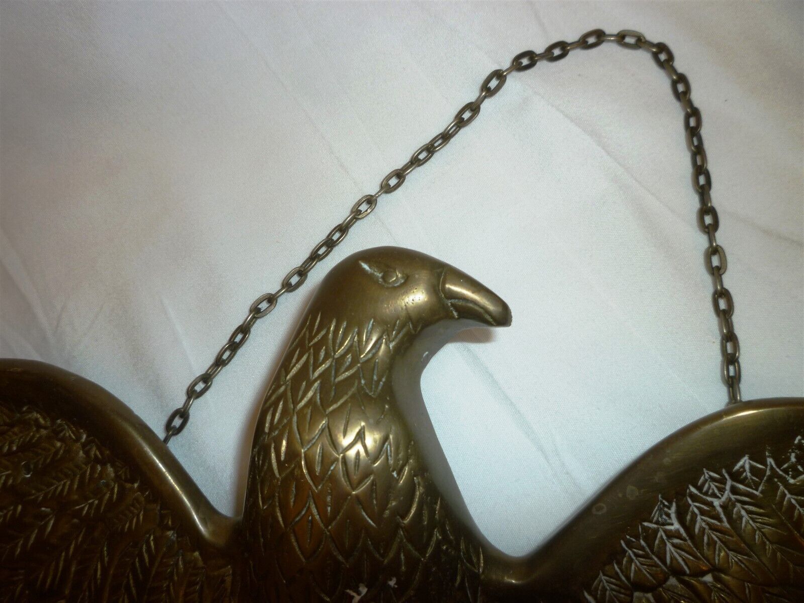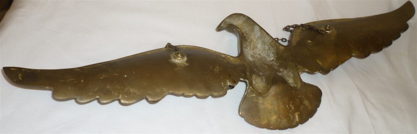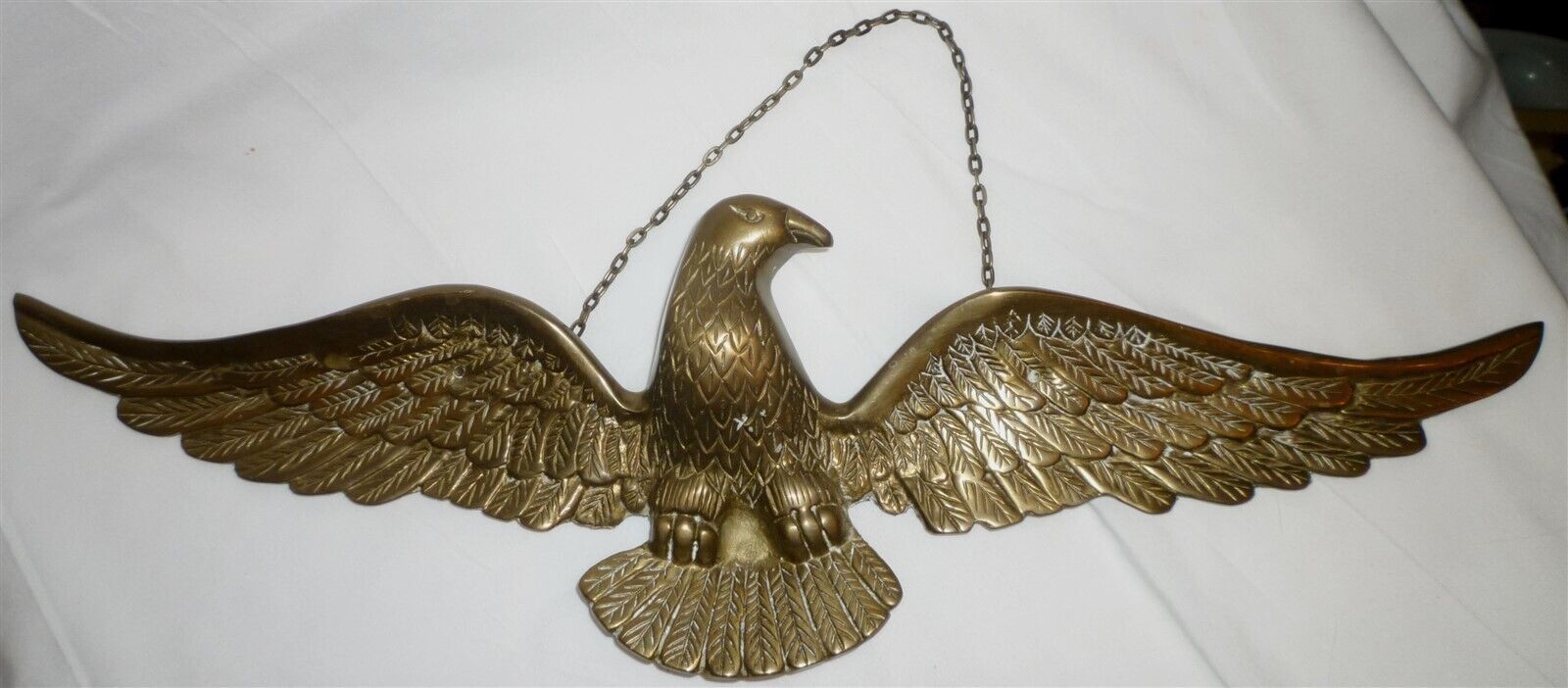 VINTAGE SOLID BRASS AMERICAN EAGLE SPREAD WINGS CHAIN WALL HANGING