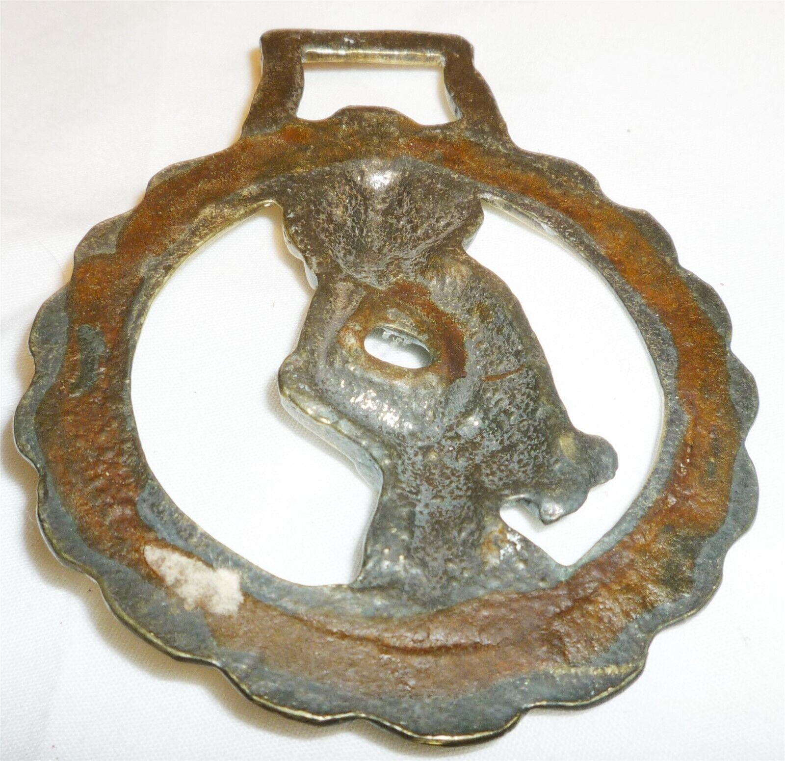 VINTAGE SOLID BRASS HORSE SADDLE HARNESS BRASS MEDALLION CORNISH PIXIE