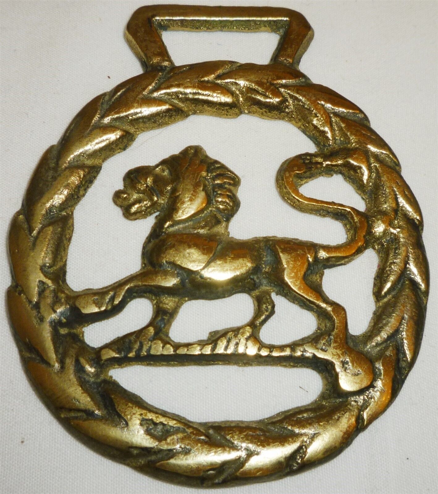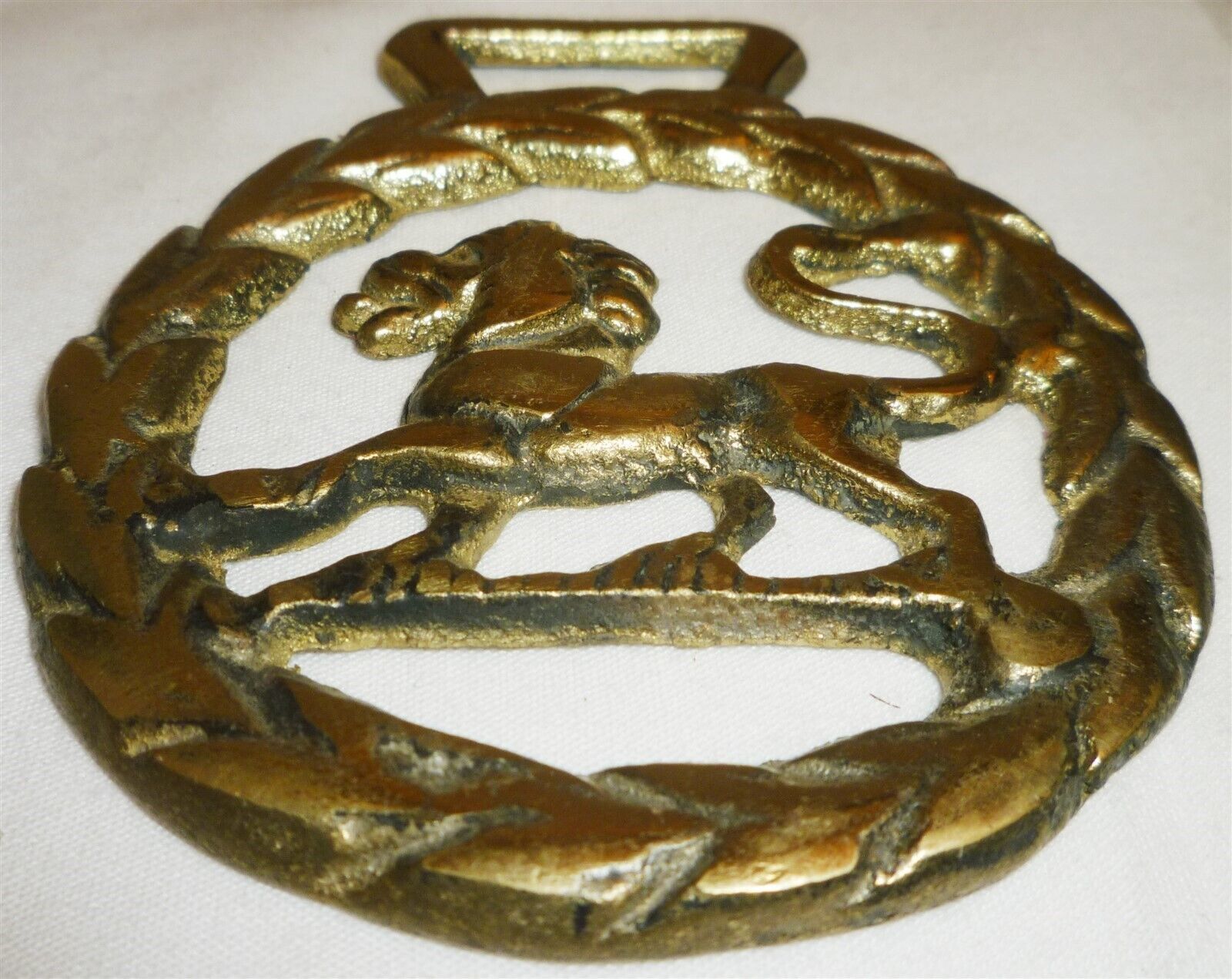 VINTAGE SOLID BRASS HORSE BRASSES HERALDIC LION