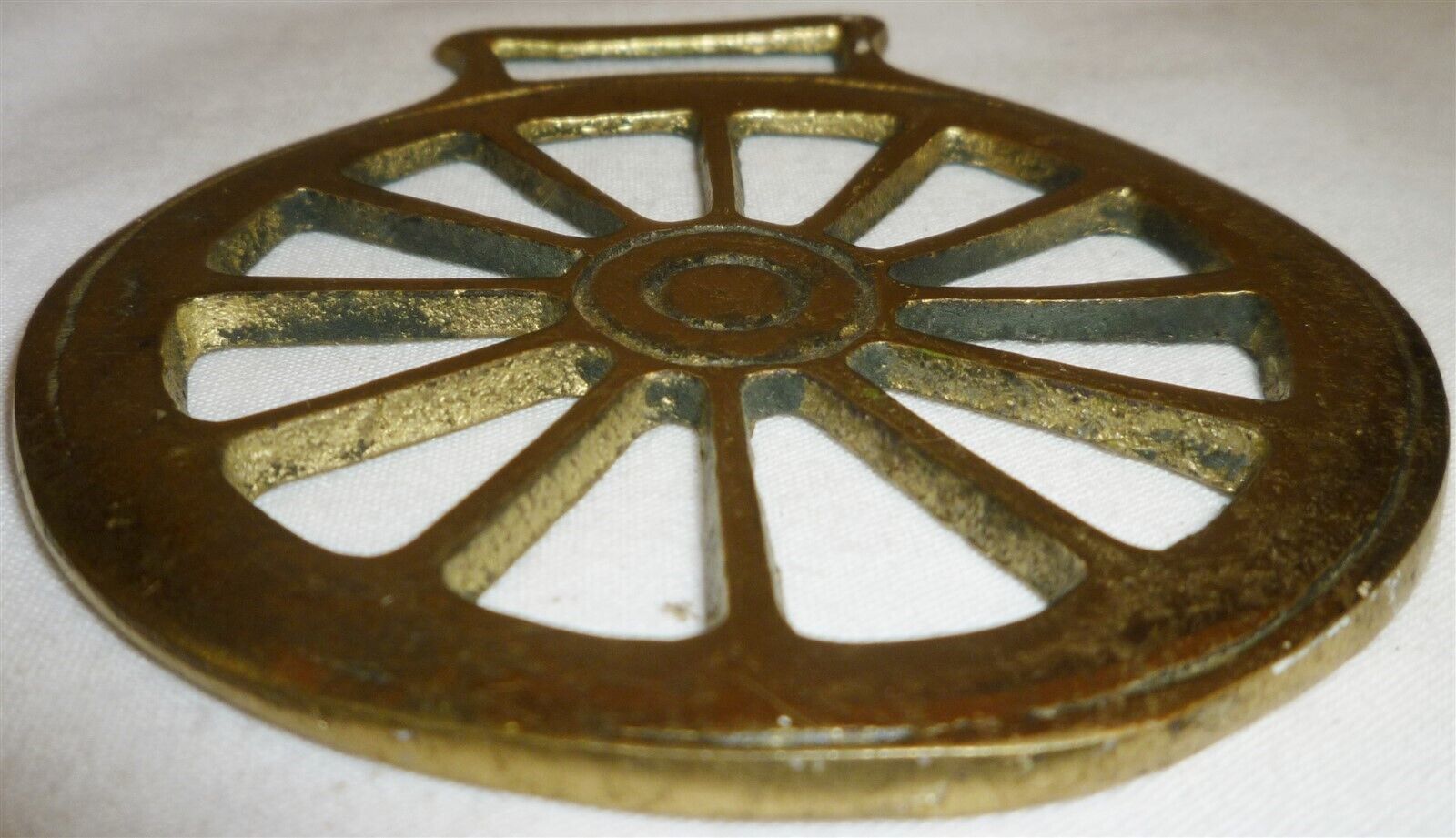 VINTAGE SOLID BRASS HORSE BRASSES WAGON WHEEL