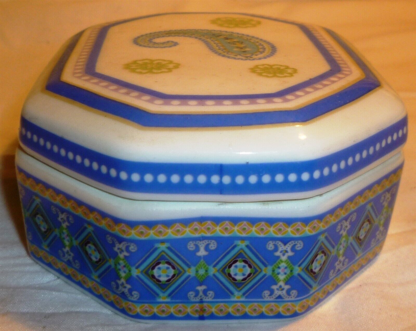 MINIATURE CHARMING PORCELAIN TRINKET BOX ANDREA BY SADEK CAPRI BLUE