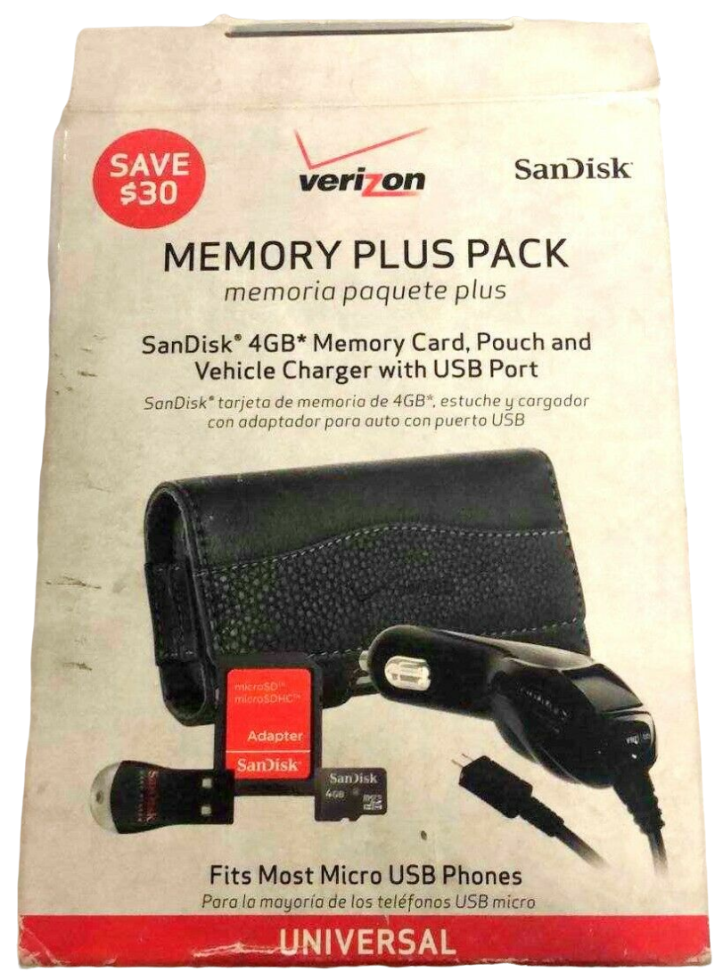 Verizon Mémoire Plus Paquet Avec Carte Mémoire & Véhicule Chargeur