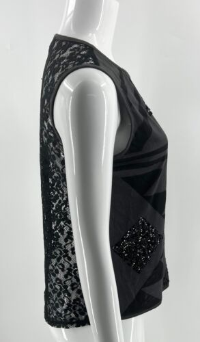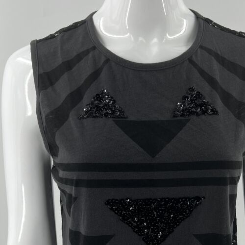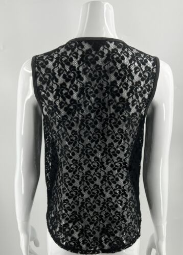 Express Tank Top Size S Black Geometric Sequin Front Lace Back Sleeveless Womens added to cart.