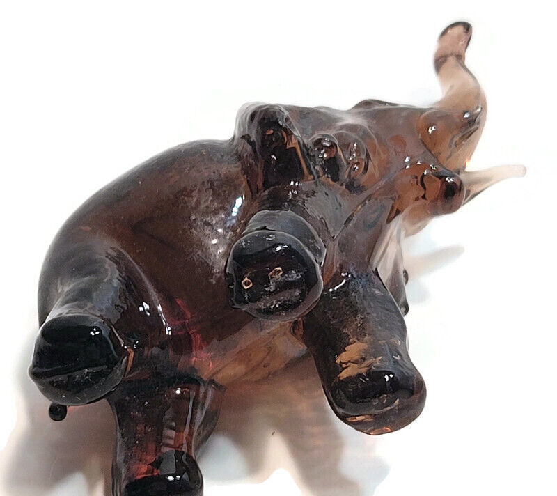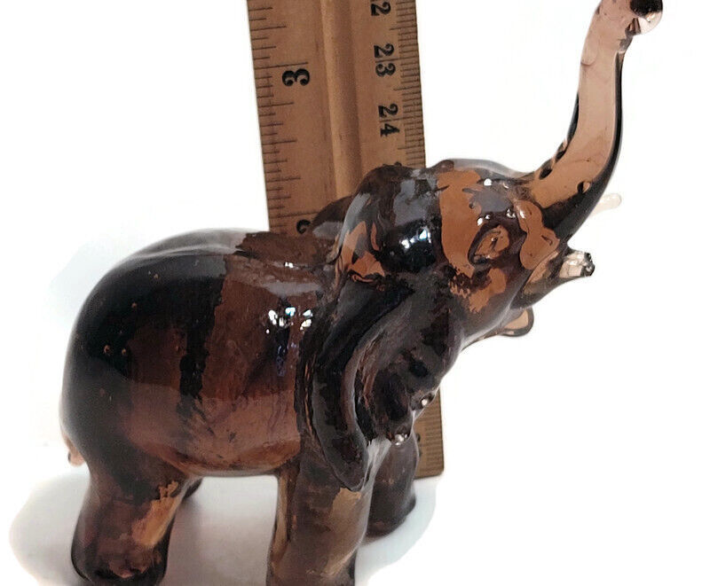 Art Glass Elephant Brown/Dark Amber Trunk Up and 50 similar items
