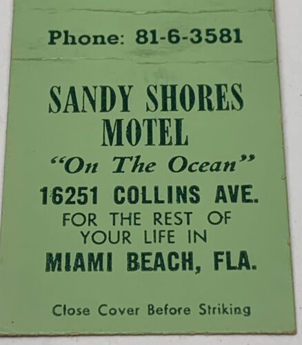 Front Strike Matchbook Cover Sandy Shores Motel Miami Beach, Florida gmg