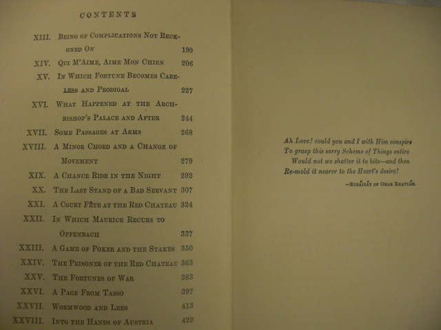 This was the #7 best seller for 1901. A palace intrigue romance novel. This story takes place in a fictional kingdom within the Austrian empire prior to WWI. Interestingly the plot is similar to the events leading up to WW1. There are two romances in the novel, the first being an American who gets caught up in the cogs of a conspiracy to overthrow a king. He falls in love with the king's daughter knowing that it is destined to be an unrequited love. In the end he professes his love and she hers before he dies in her arms.