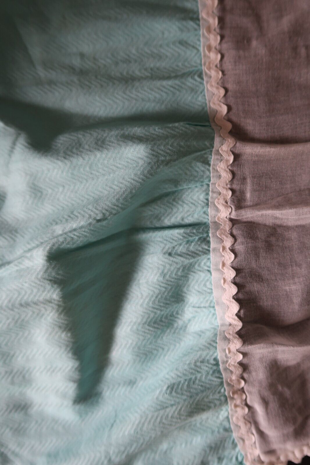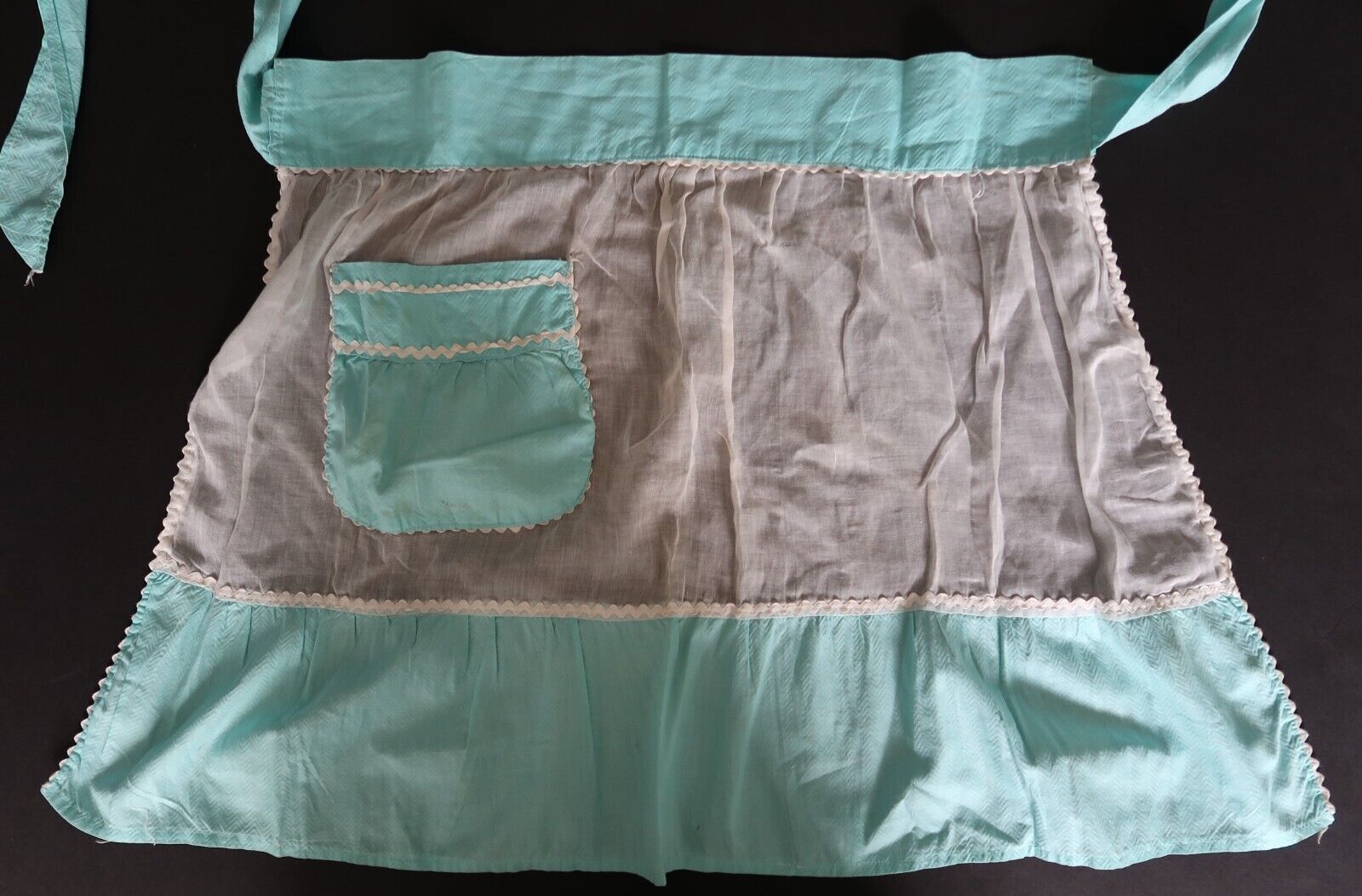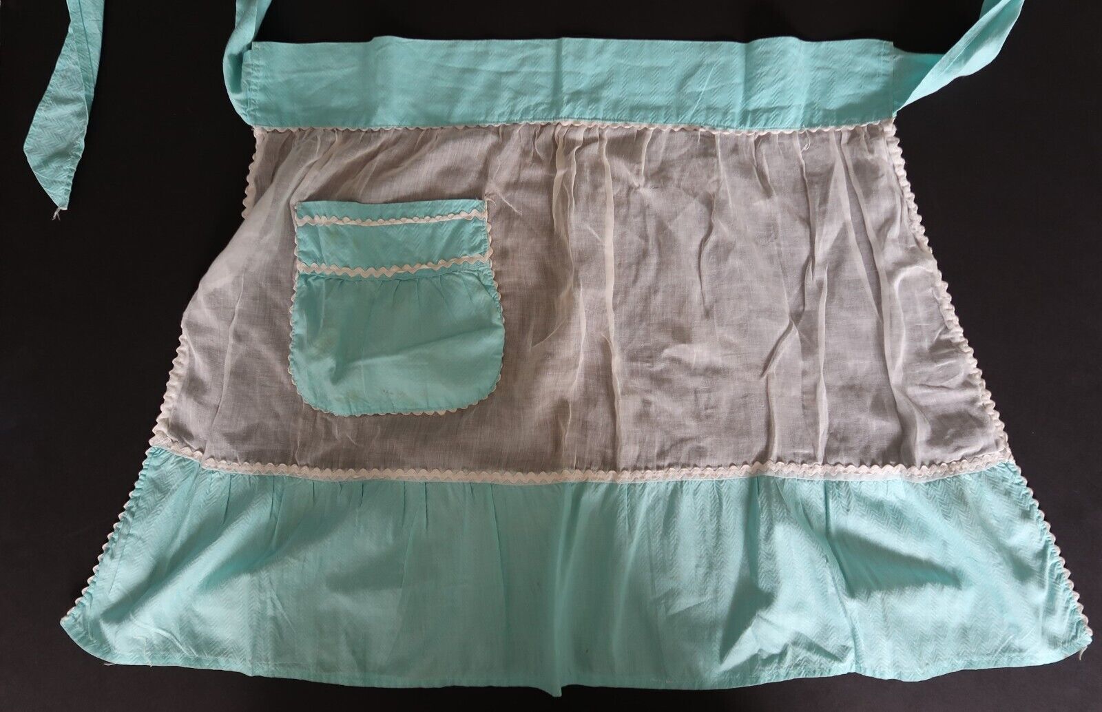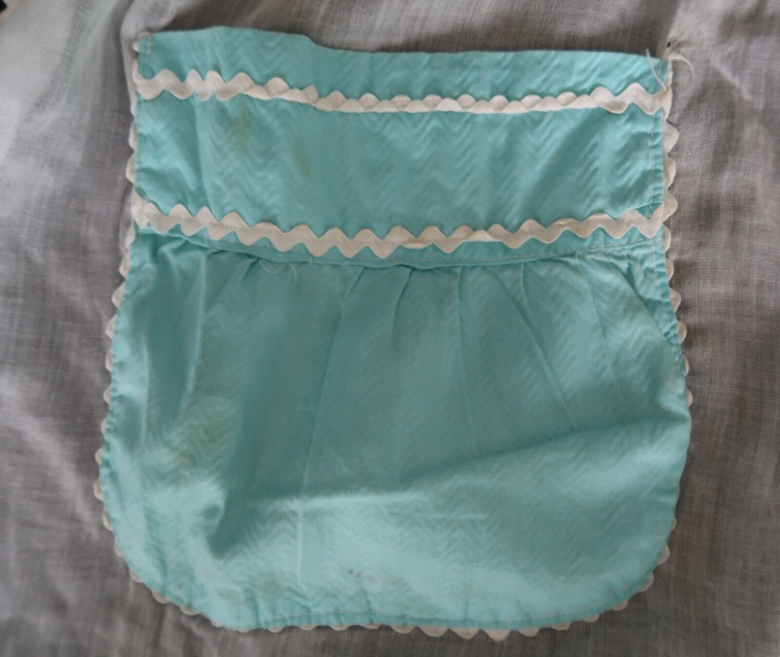 Lovely vintage pink & blue color block half apron with white trim