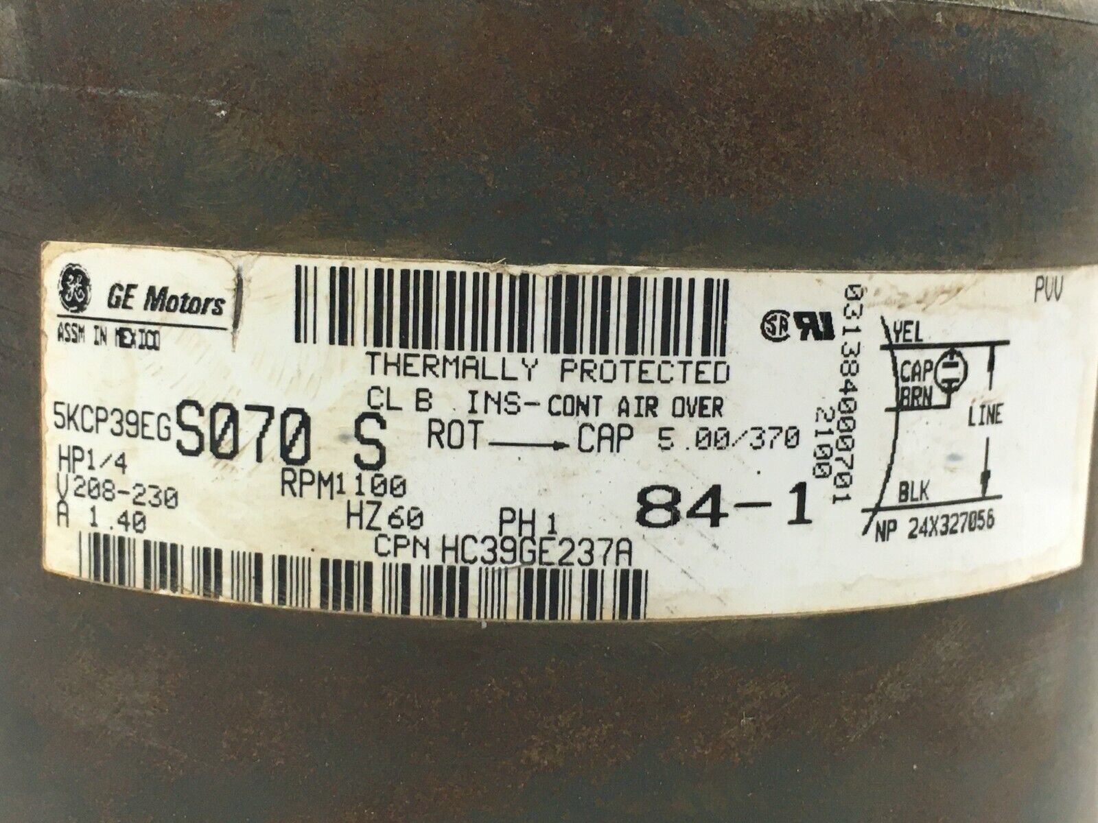 GE 5KCP39EGS070S Carrier HC39GE237A Condenser Motor 1100RPM 1/4HP used #MC87