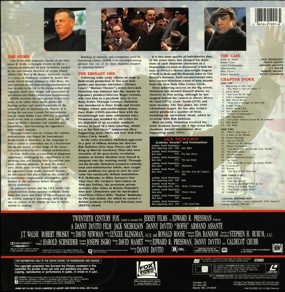 HOFFA JACK NICHOLSON LASERDISC RARE