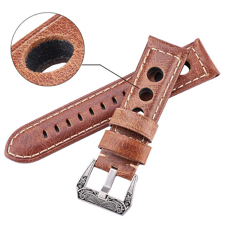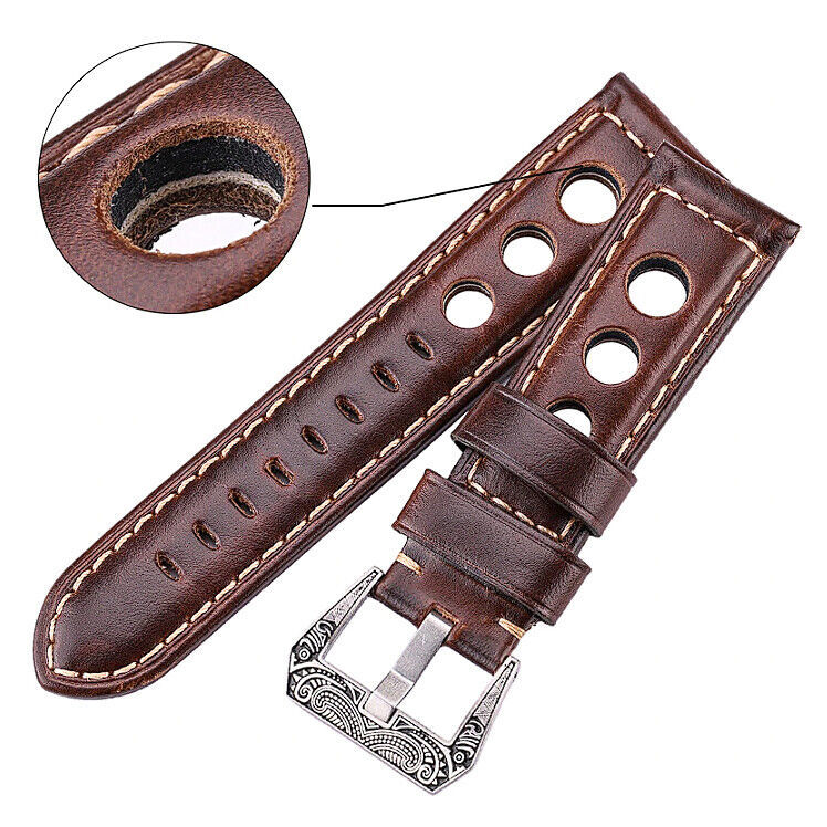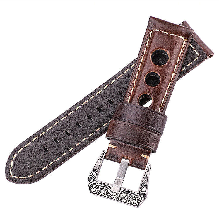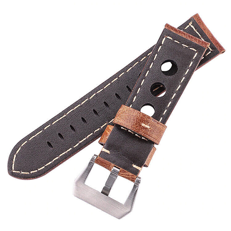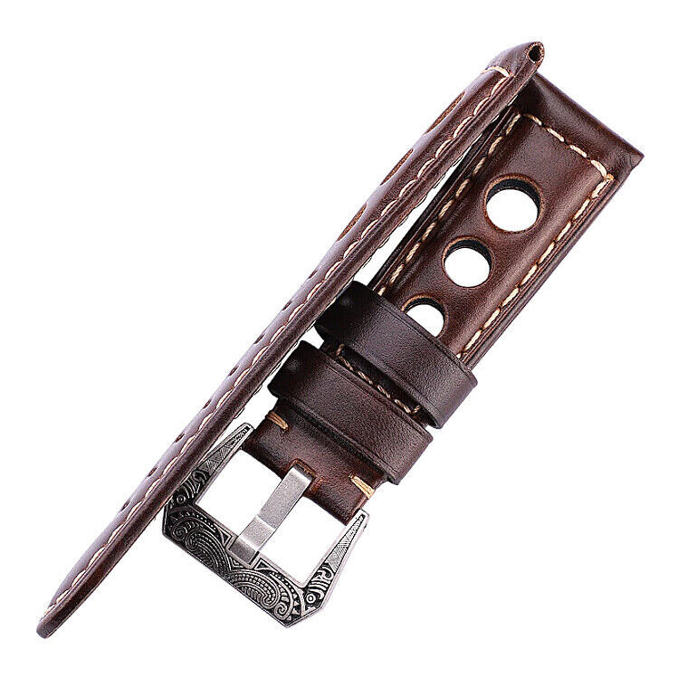 24mm Grand Prix Rally Genuine Cowhide Leather Brown Watch Strap/Watchband/Belt