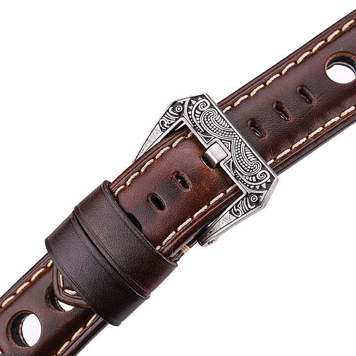 HENGRC Genuine Cowhide Leather Grand Prix Rally Premium Watch Strap - 24mm Lug Width Premium Watchband (Custom Unique Stainless Steel Buckle Included with Every Strap + GIFT: Changing Tool + 4 Spring Bars)