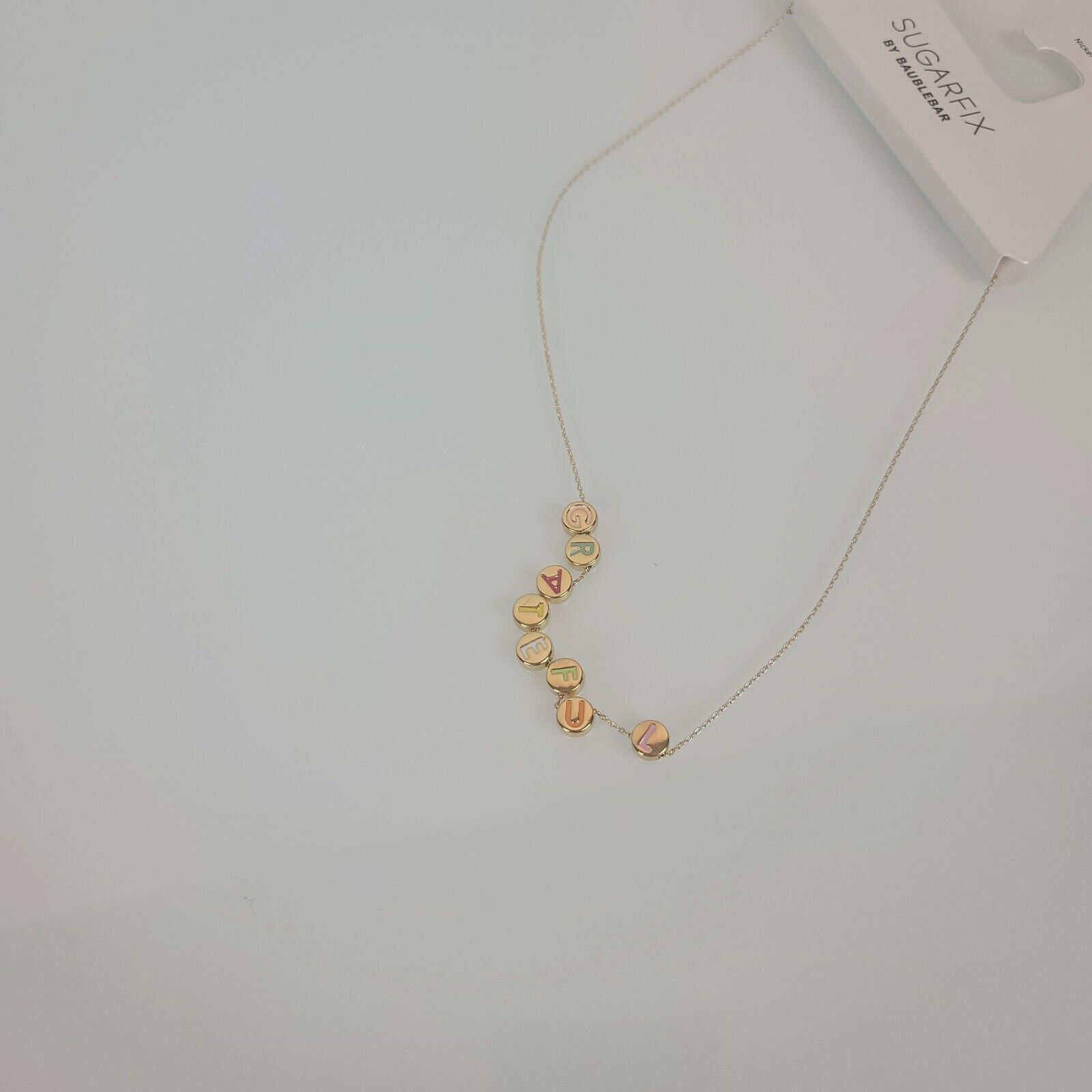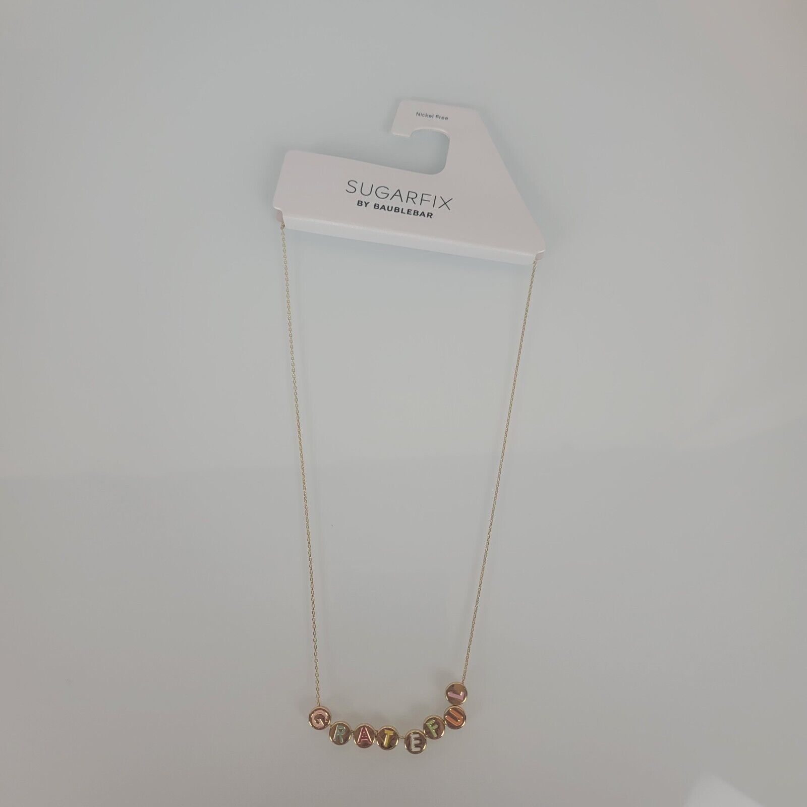 Sugarfix by Baublebar Goldtone GRATEFUL Rainbow Spellout Necklace NEW