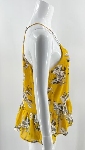 Japna Tank Top Size M Yellow Gray Floral Spaghetti Strap Ruffle Hem Cami Womens