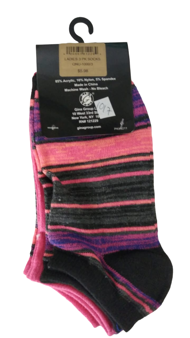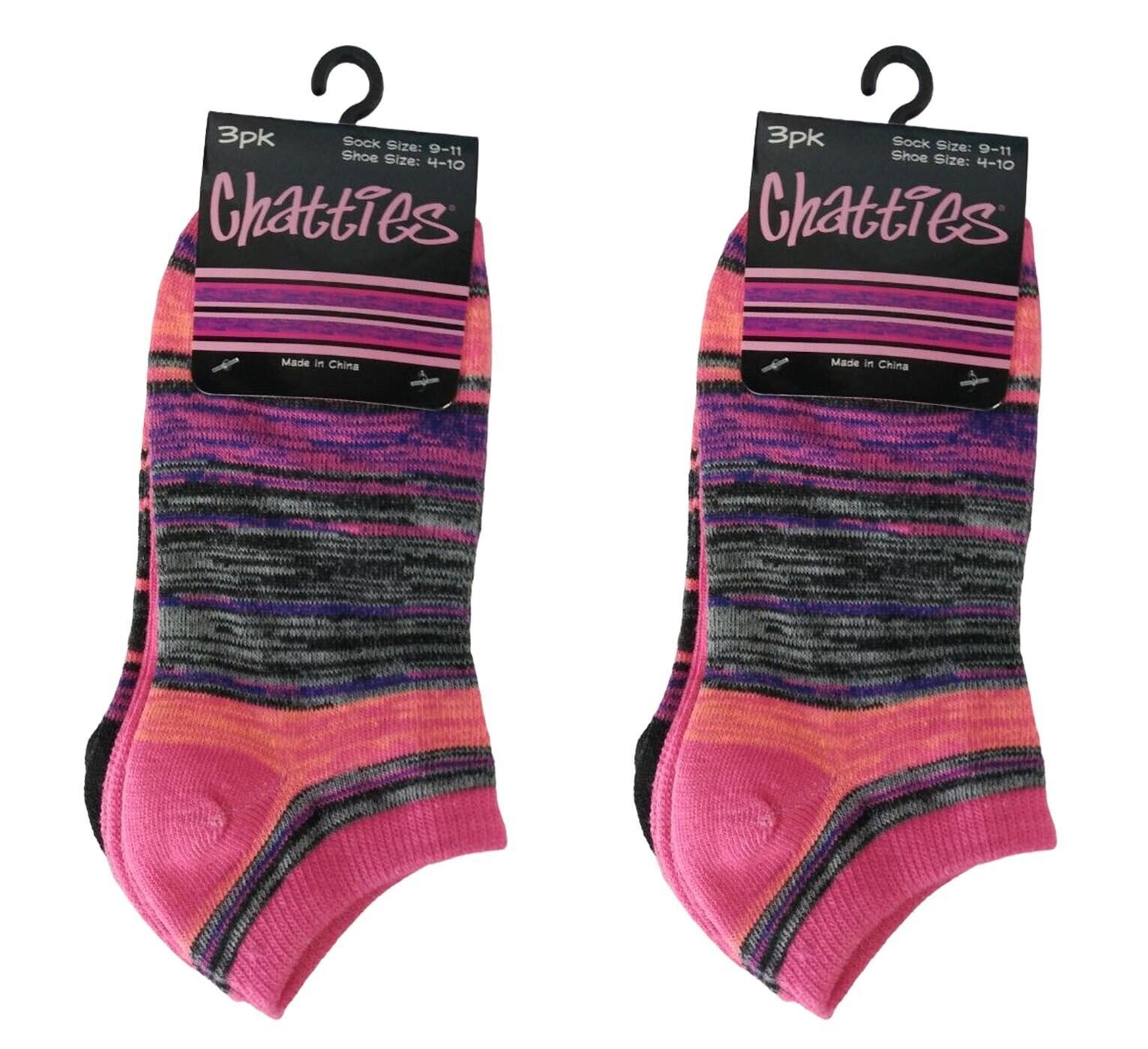 LOT OF 2 Chatties Calzini da donna assortiti a taglio basso da 3 paia - NERO/ROSA