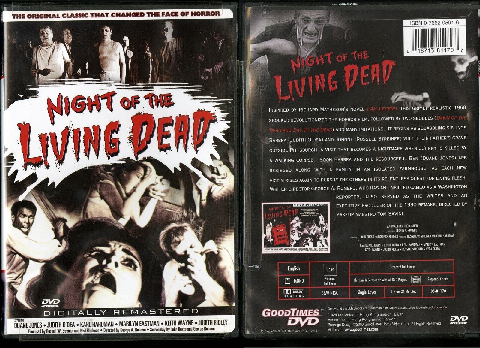 NIGHT OF THE LIVING DEAD DVD JUDITH O'DEA REMASTERED GOODTIMES VIDEO NEW SEALED