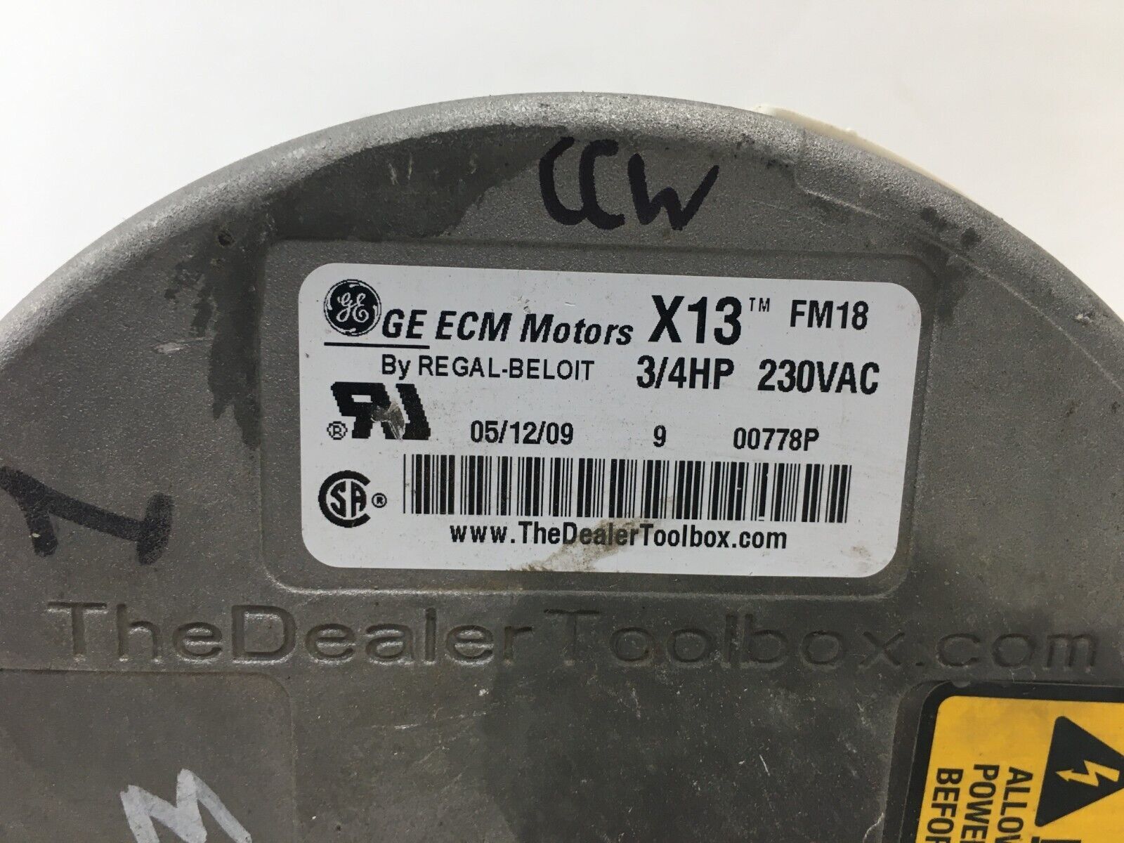 This is GE ECM Motors X13 5SME39NXL089 p/n 0131M00024 CCW Lead End rotation Blower Motor 3/4HP 1050RPM 208-230V used part.