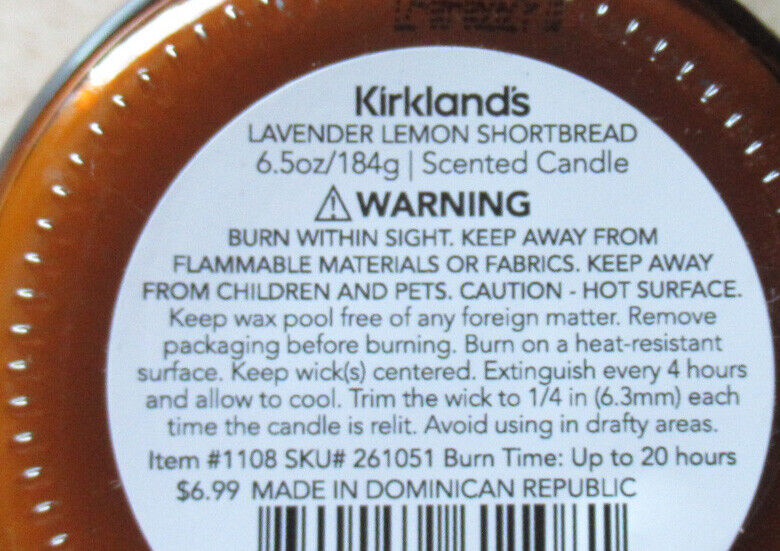 Kirkland's 6.5 oz Jar Candle up to 20 hrs Natural Wax LAVENDER LEMON SHORTBREAD