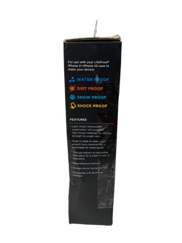 Sujete su iPhone 4/4s protegido por LifeProof a su brazo con el brazalete LifeProof y salga a la carretera, a la piscina, al gimnasio, al surf, a las pendientes, a las canchas, a la pista o al sendero. El brazalete LifeProof le permite disfrutar de la acción mientras mantiene su iPhone al alcance de la mano. De esa manera, su GPS, cámara, rastreadores de rendimiento, aplicaciones de entrenamiento, música y comunicaciones están siempre al alcance de la mano. Y no temas, el brazalete LifeProof está diseñado para una comodidad fresca y un ajuste perfecto. Construido con materiales de primer nivel y un diseño ergonómico, el brazalete le permite mantener su iPhone 4/4s al alcance de la mano durante todo el entrenamiento. Además, al igual que el estuche LifeProof que lo protege, el brazalete le