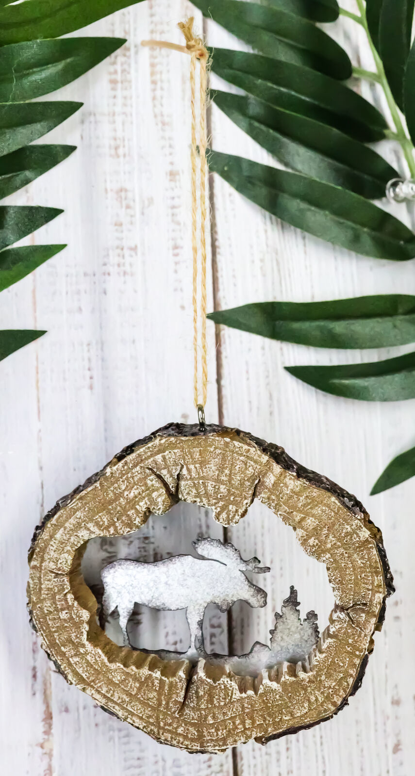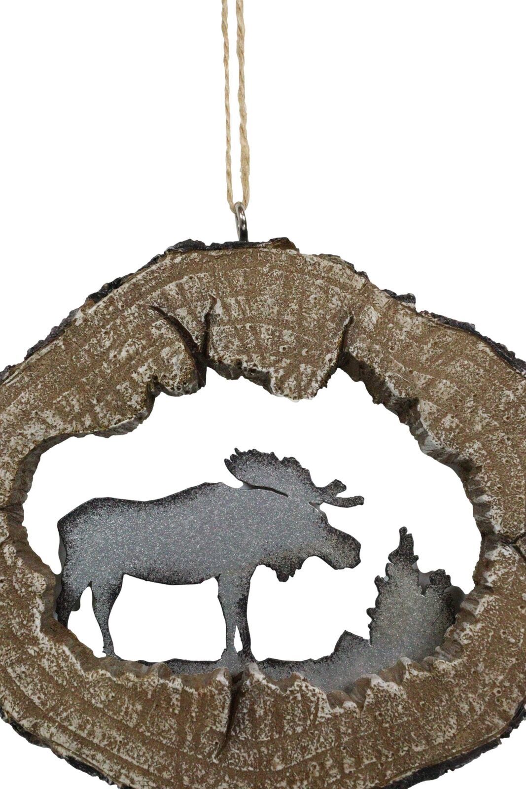 Rustic Western Emperor Moose Faux Wood Log Set of 4 Christmas Tree Ornaments