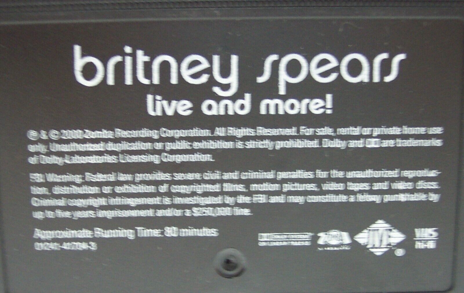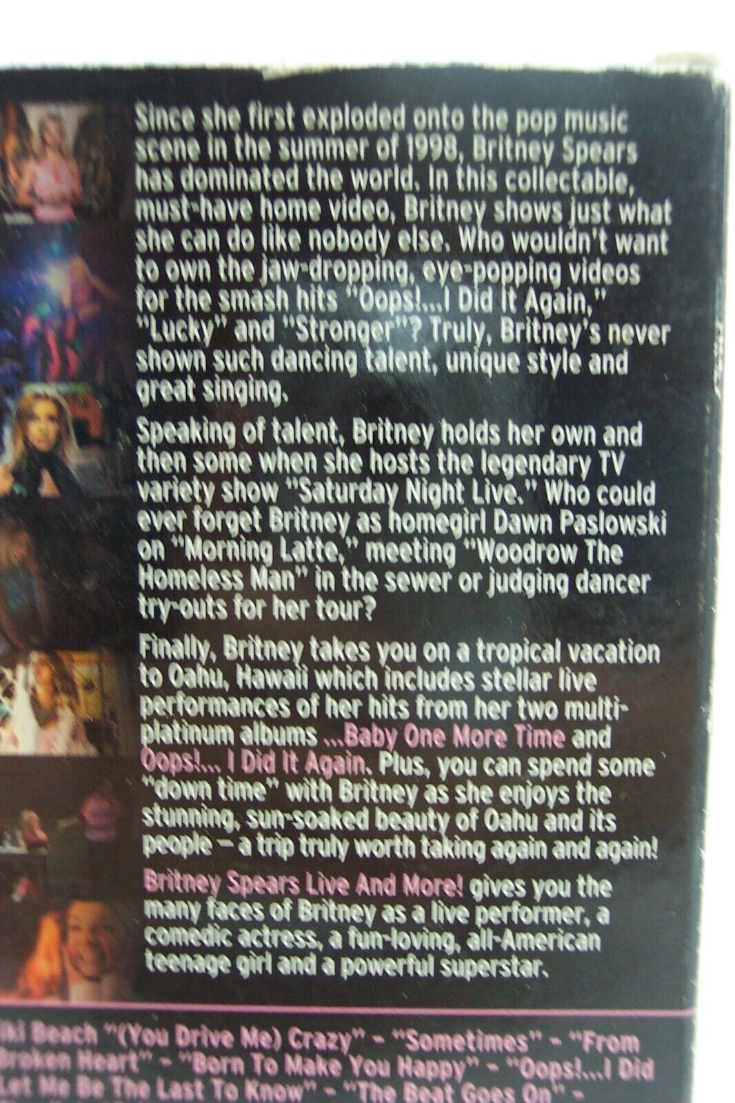 This is Vintage BRITNEY SPEARS Live and More VHS VIDEO From 2000. It has a runtime of 80 minutes. It is in Great condition. Box has minor wear from use, but nothing major. Includes her LIve IN Hawaii, Saturday Live Skits and Music videos for Opps!..I Did It Again, Lucky and Stronger. Combine auctions to save on shipping. Please contact me if you need to make other payment arrangements. ELAG