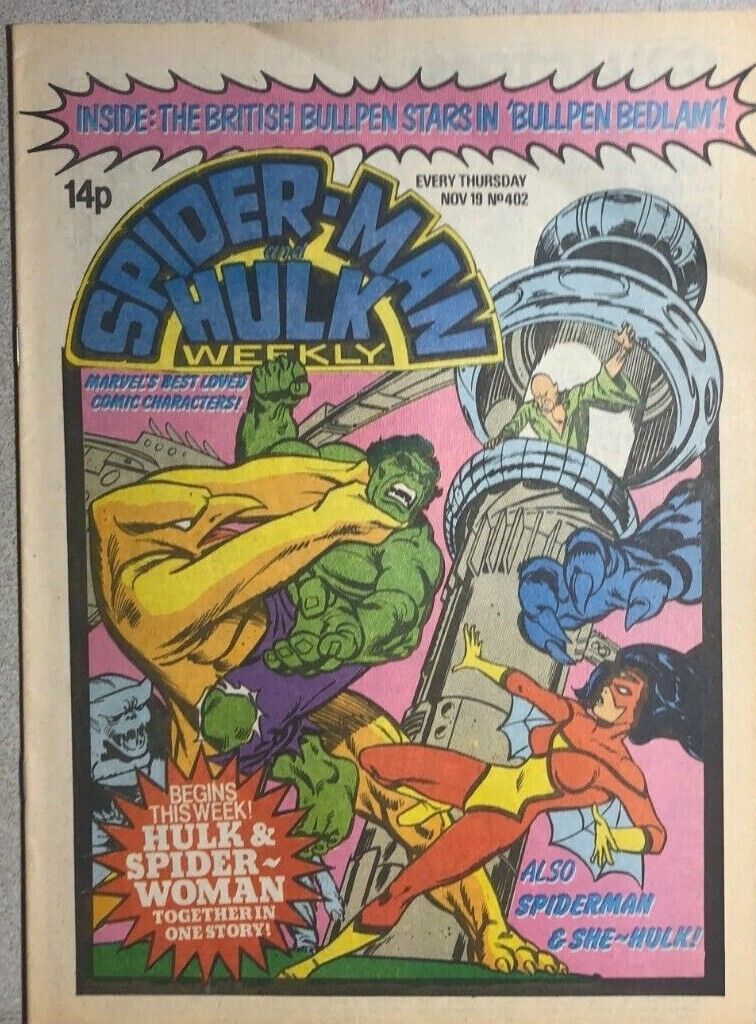 SPIDER-MAN & HULK WEEKLY #402 (1980) Marvel Comics UK Spider-Woman She-Hulk FN-