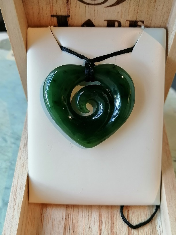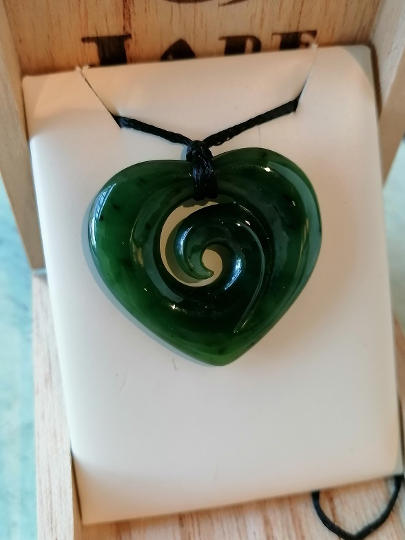 Natural Nz designs Jade heart shape pendant / long necklace 33 mm