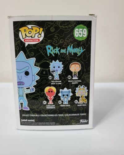 From Rick and Morty, hologram Rick Clone, as a stylized POP vinyl from Funko! Figure stands 3 3/4 inches and comes in a window display box. Check out the other Rick and Morty figures from Funko! Collect them all!. I always take extra care when shipping. Funkos are stored inside a plastic display case protector .45mm thick, wrapped in a scratch protector that easily peels off when ready to show off on your shelf. I'm always open to offers so feel free to message me, Thanks
