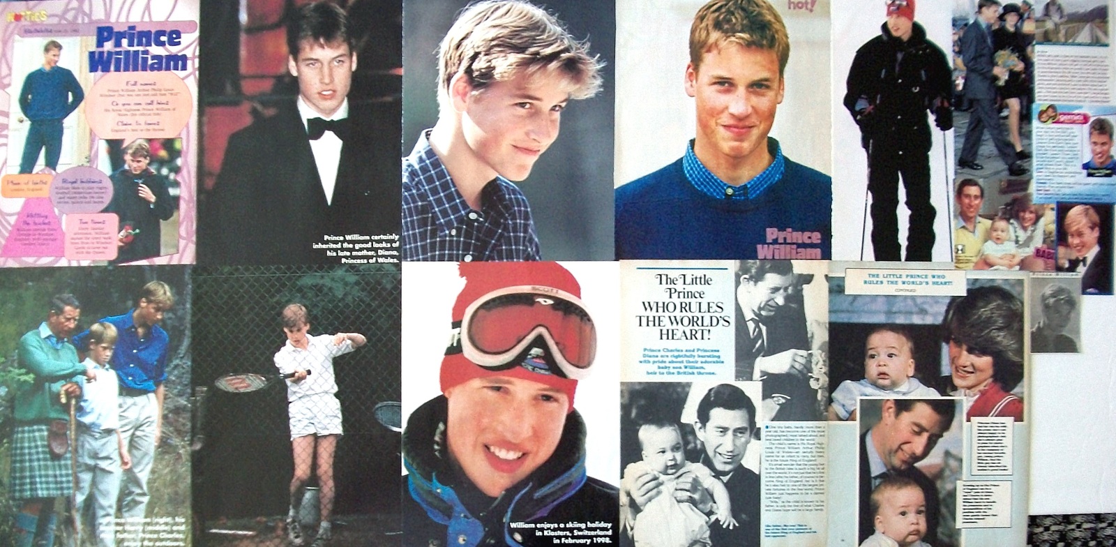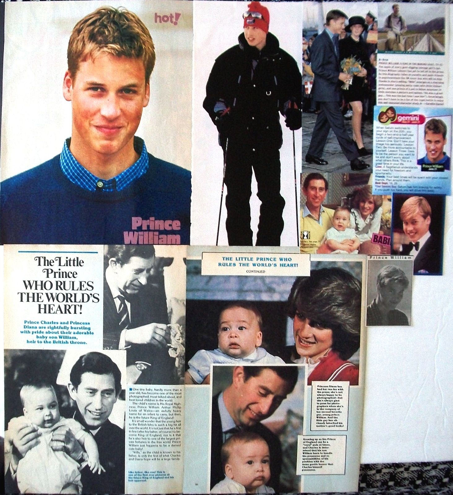 DESCRIPTION: Sixteen (16) PRINCE WILLIAM Color Clippings, Articles, Pin-Ups