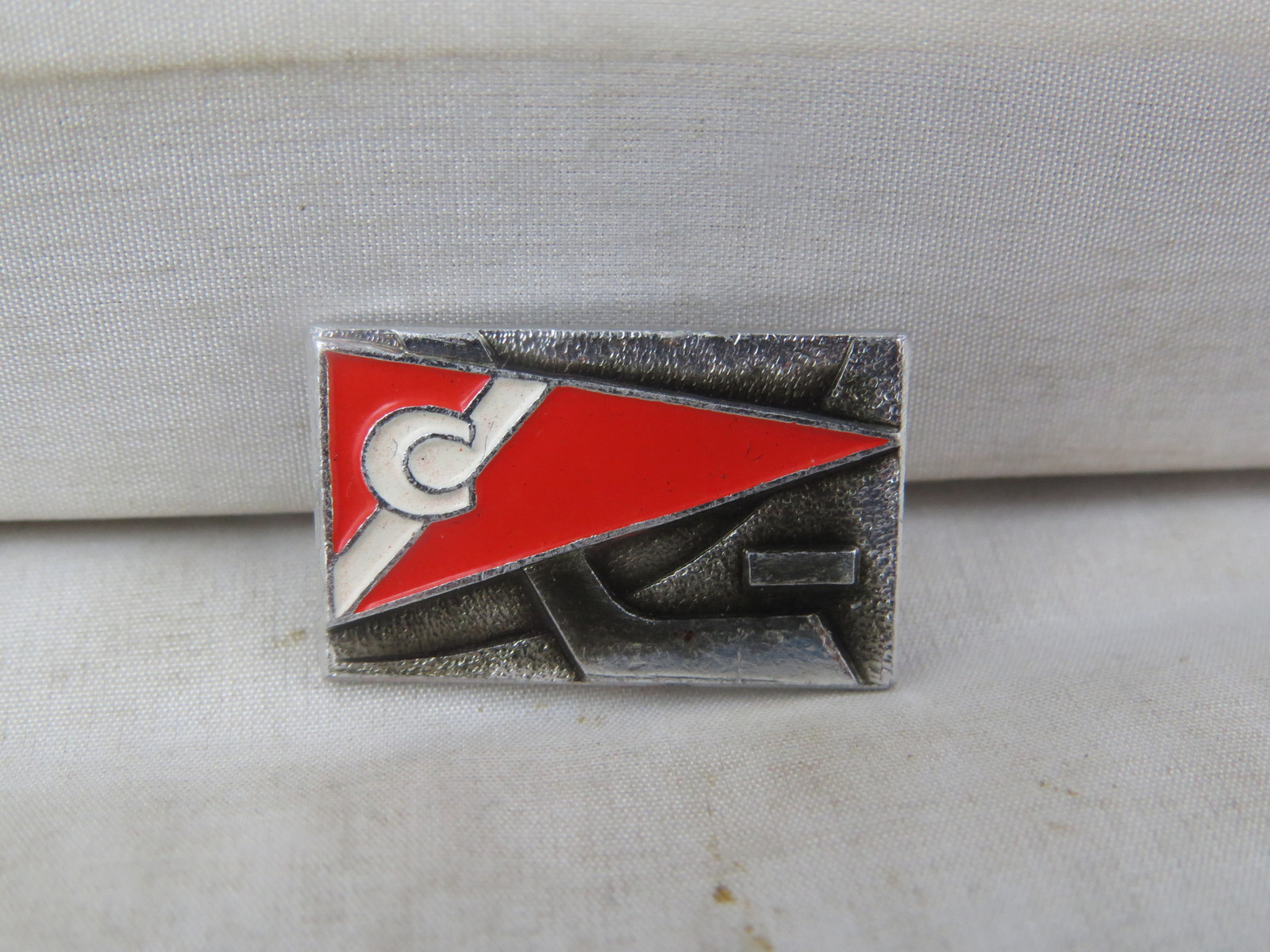 Vintage Soviet Hockey PIn - Spartak Moscow Flag Design - Stamped Pin
