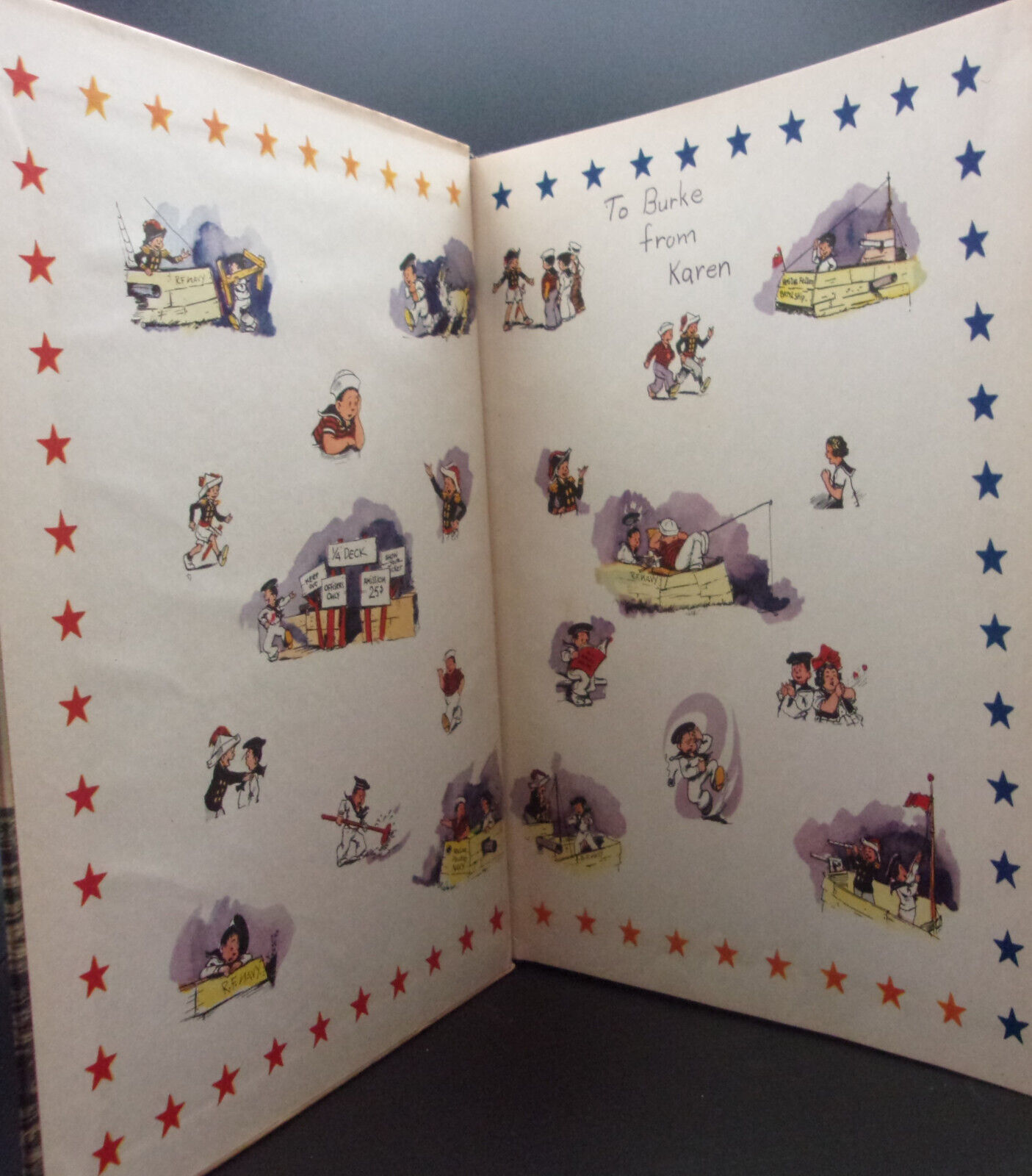 A creative book thank you and patriotic tribute to the officers and men in the Navy during WWII by the 1917-1949 syndicated cartoon artist, and later art book instructor.