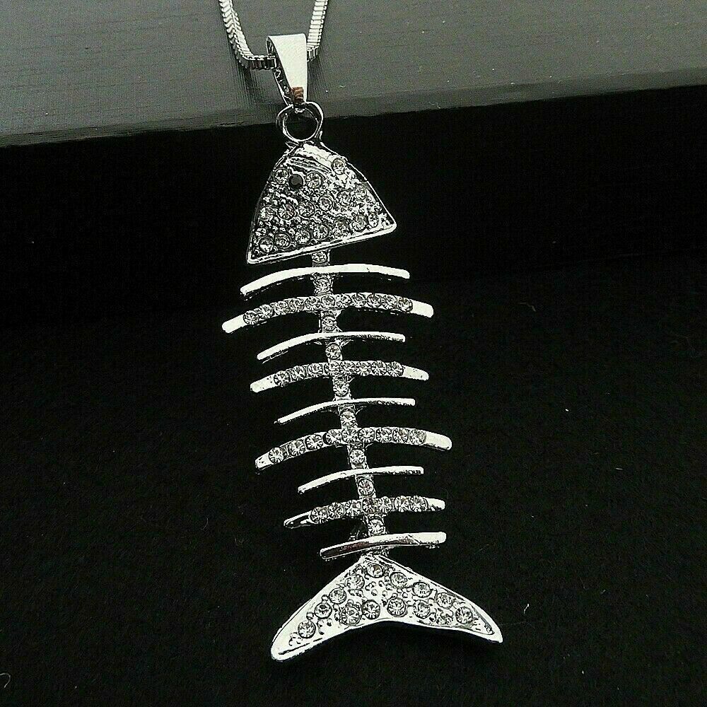 4Ct Round Cut Diamond Fish Bone Pendant 14k and similar items