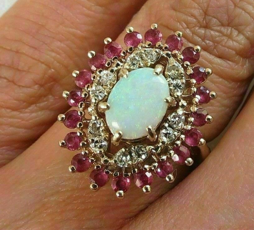 2.50Ct Oval Cut Fire Opal & Red Ruby Vintage and similar items