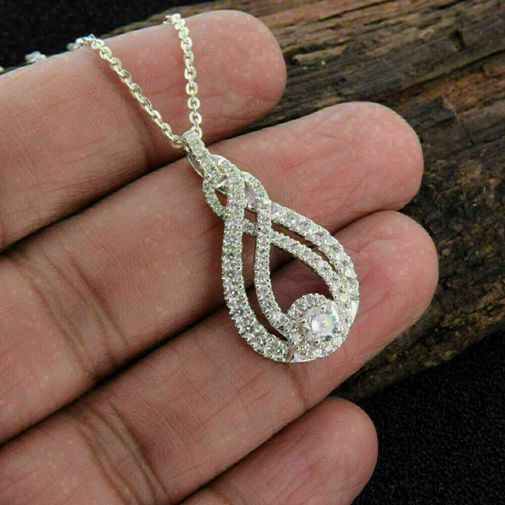 1.20Ct Round Cut VVS1 Diamond Infinity Women's Pendant 14K White Gold Finish