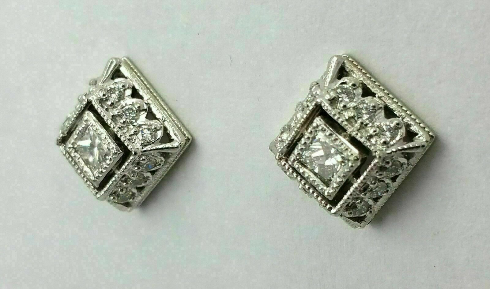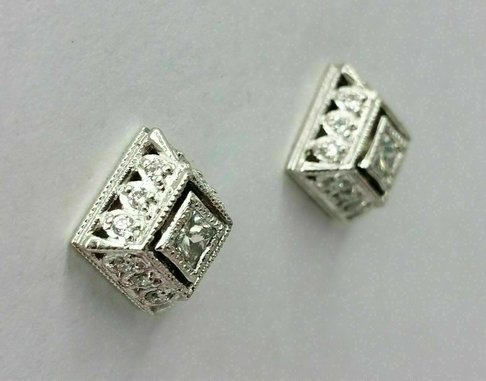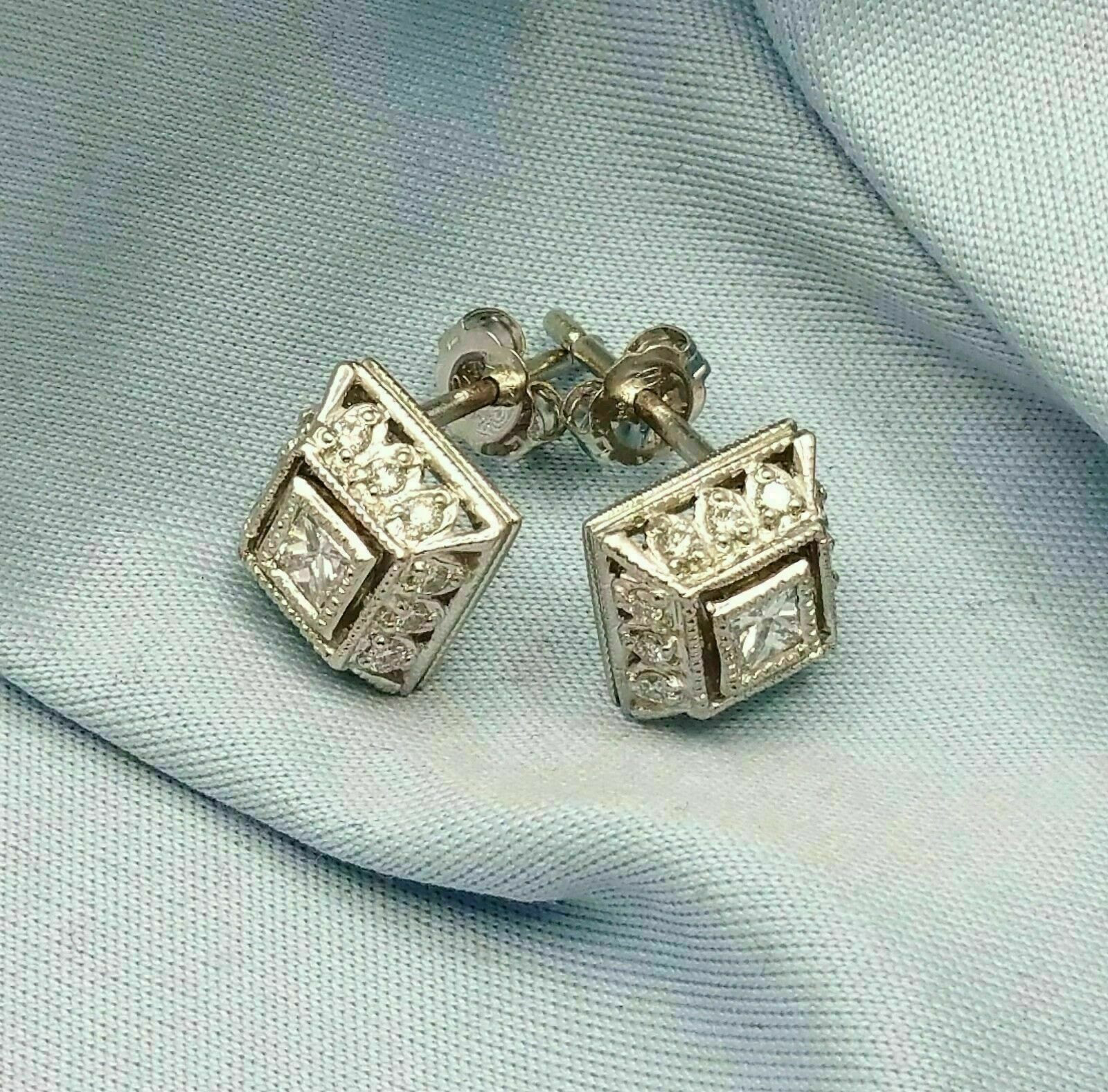 1.2Ct Round Cut VVS1 Dimond Women's Art Deco Stud Earrings 14K White Gold Finish