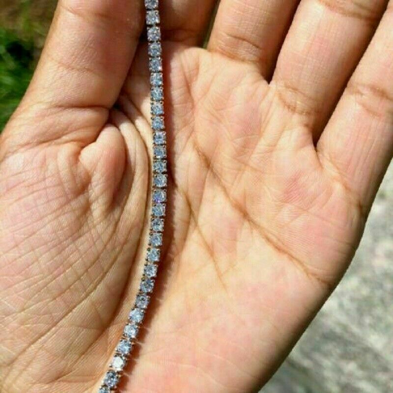 14K White Gold Finish 10Ct Round Gorgeous Cut D/VVS1 Diamond Tennis Bracelet 7"