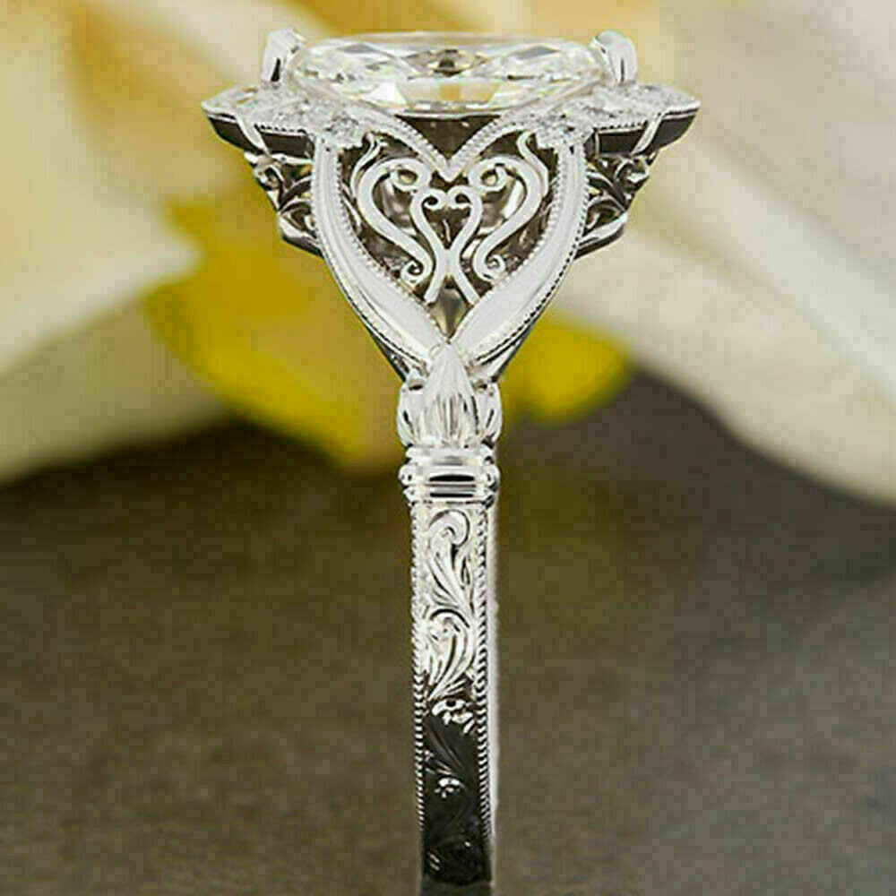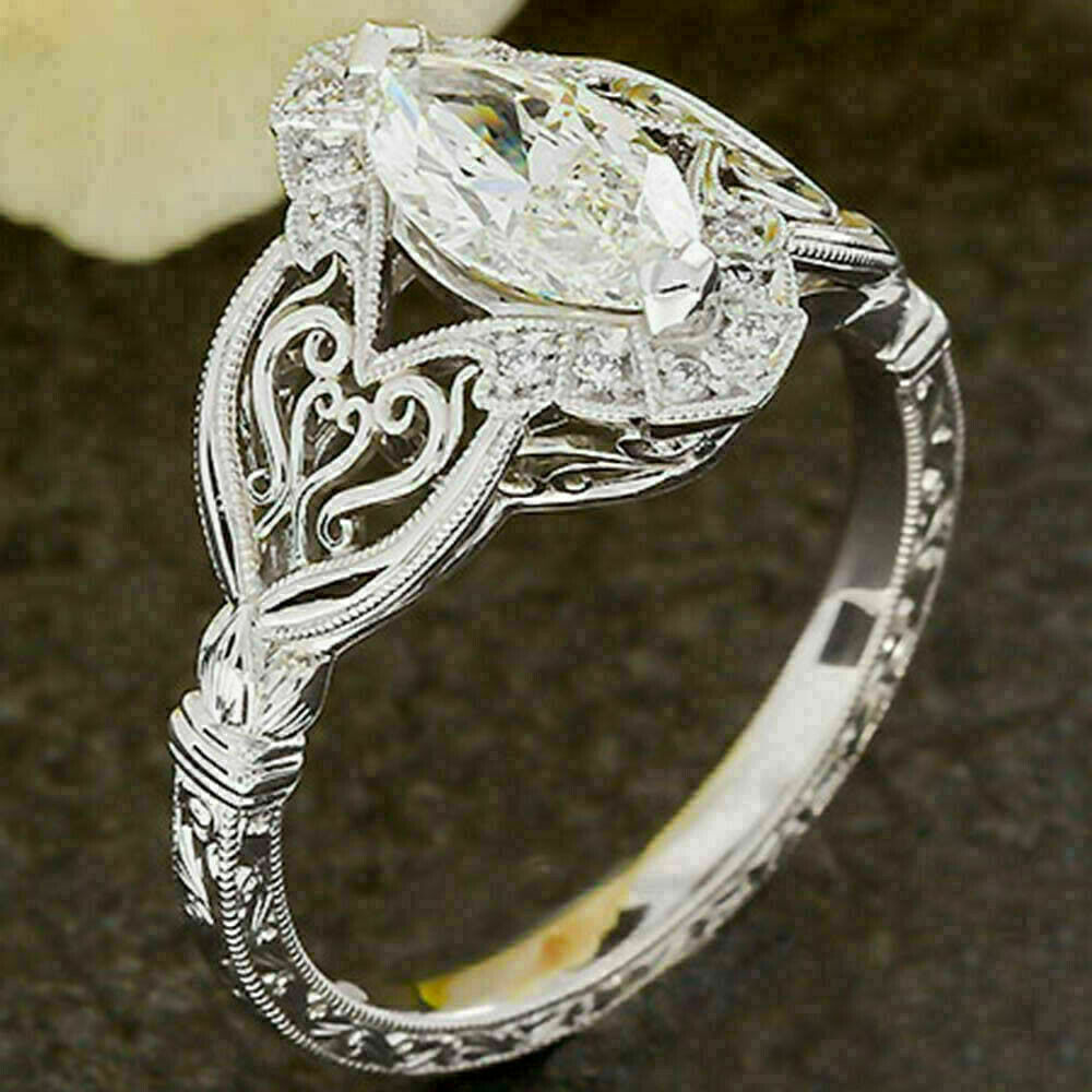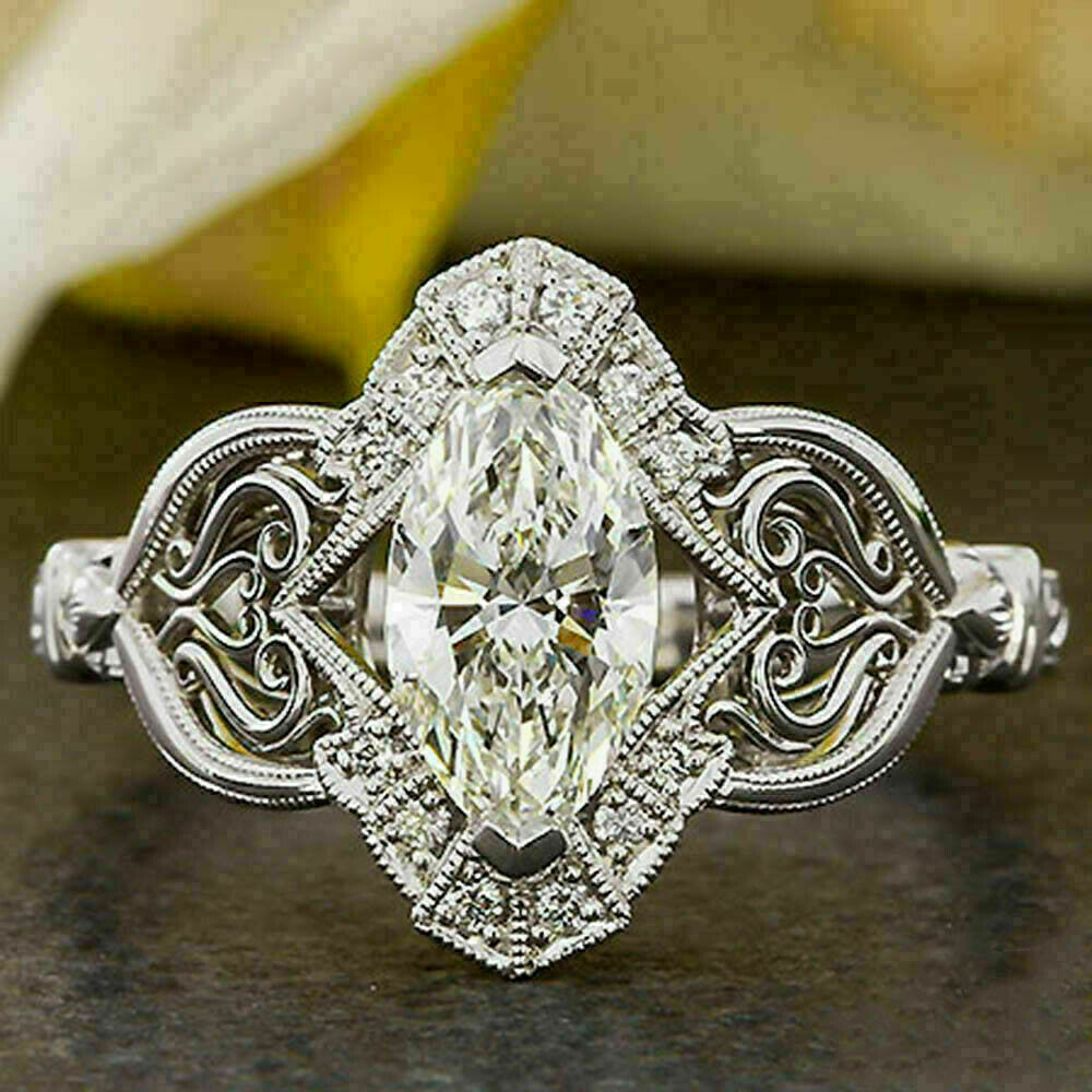 2Ct Marquise Cut VVS1 Diamond Vintage Engagement Ring 14K White Gold Finish