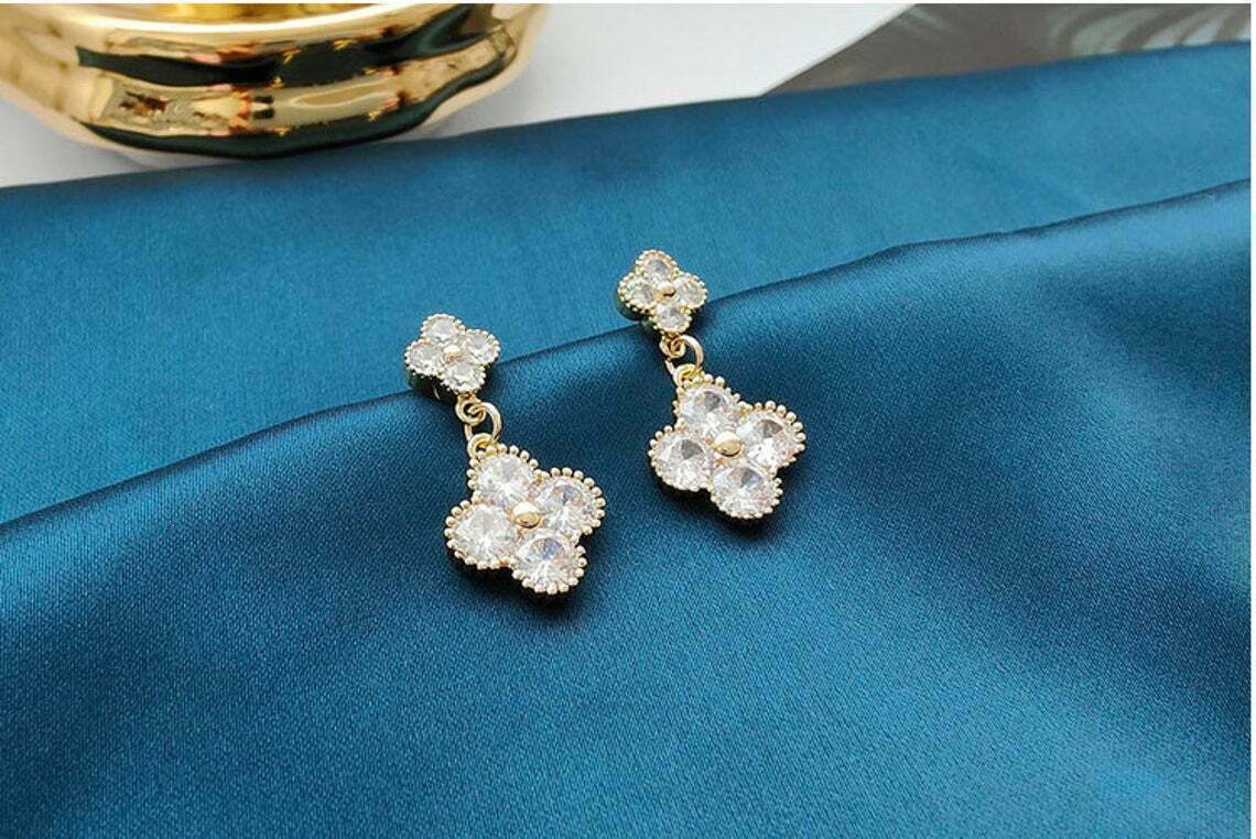 14k Yellow Gold FN 3Ct Round Cut Diamond Clover Four Leaf Drop/Dangle Earrings