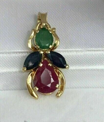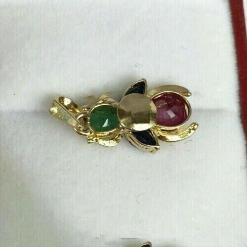 2Ct Pear CutCZ Garnet/Emerald/Sapphire Fly Spider Pendant 14k Yellow Gold Finish