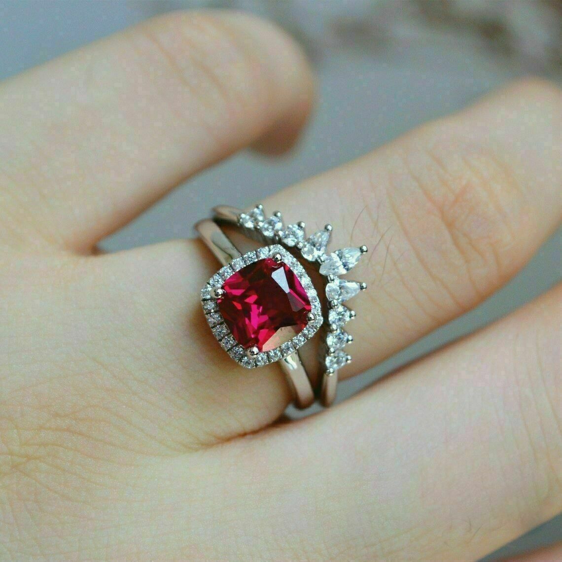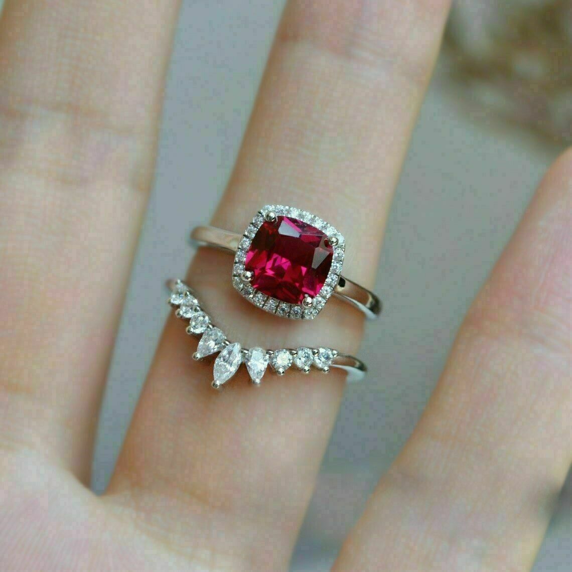2.50Ct Cushion Cut Pink Ruby Bridal Set and 50 similar items
