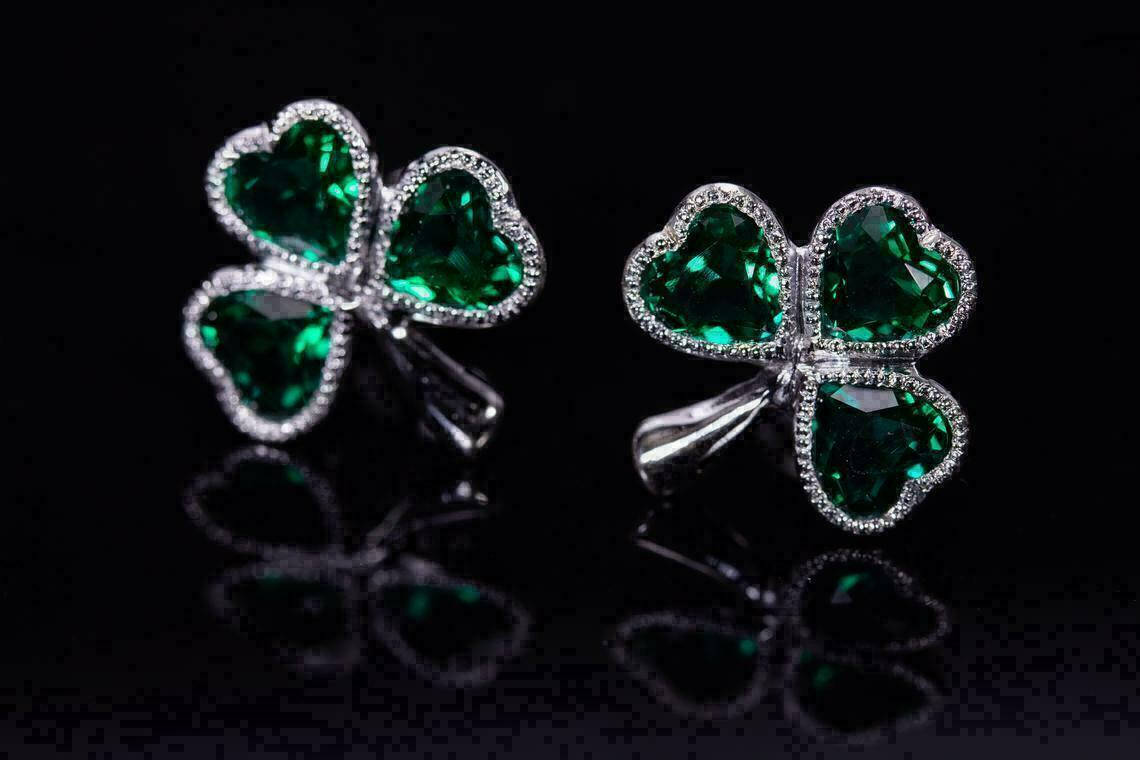 3Ct Heart Cut Green Emerald Clover Leaf Stud and 50 similar items