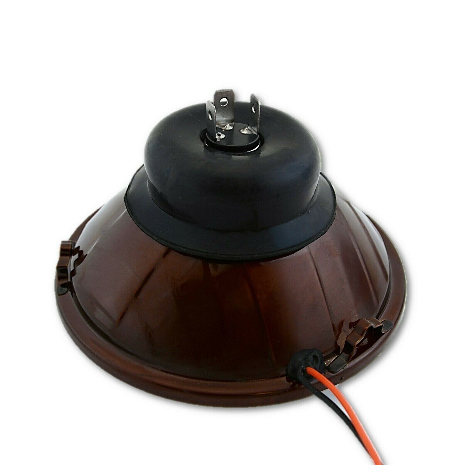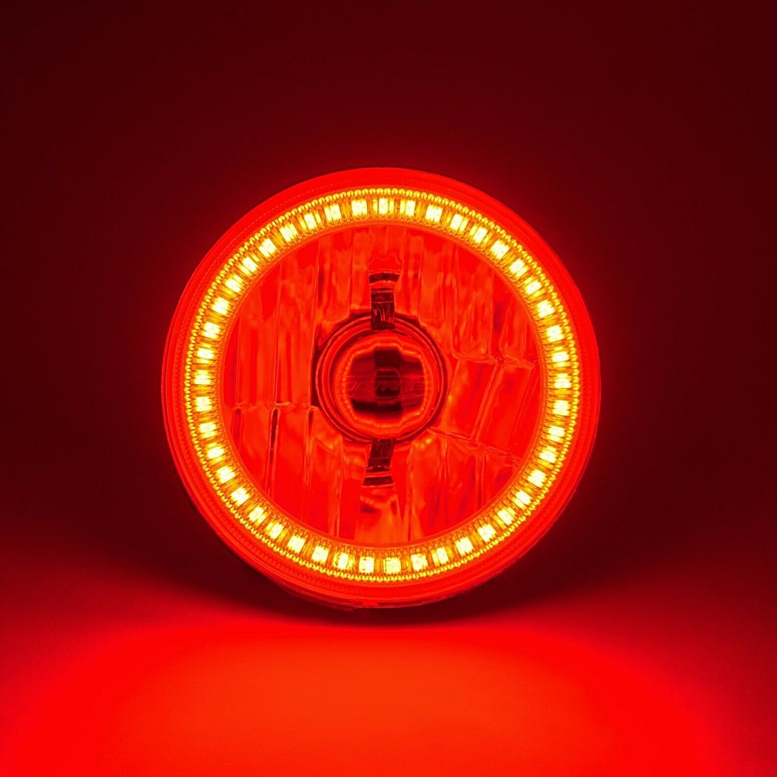 listing is for one new 5.75" round 12 volt high/low beam crystal clear H4 conversion headlight. Features red SMD LED halo ring and halogen headlight bulb. The red SMD halo rings are extremely bright. These are crystal clear glass faced headlights with metal backs and have a domed face unlike all all the others on the market that have a plastic housing and flat plastic face. These light up much brighter and whiter than the standard stock style incandescent headlight bulbs. These bulbs have the original 3 prong plug designs on the back so they will plug right into the original wiring harness. These will fit any vehicle that has stock 5.75 inch diameter headlight buckets. These are glass and we will take extra care in packaging.