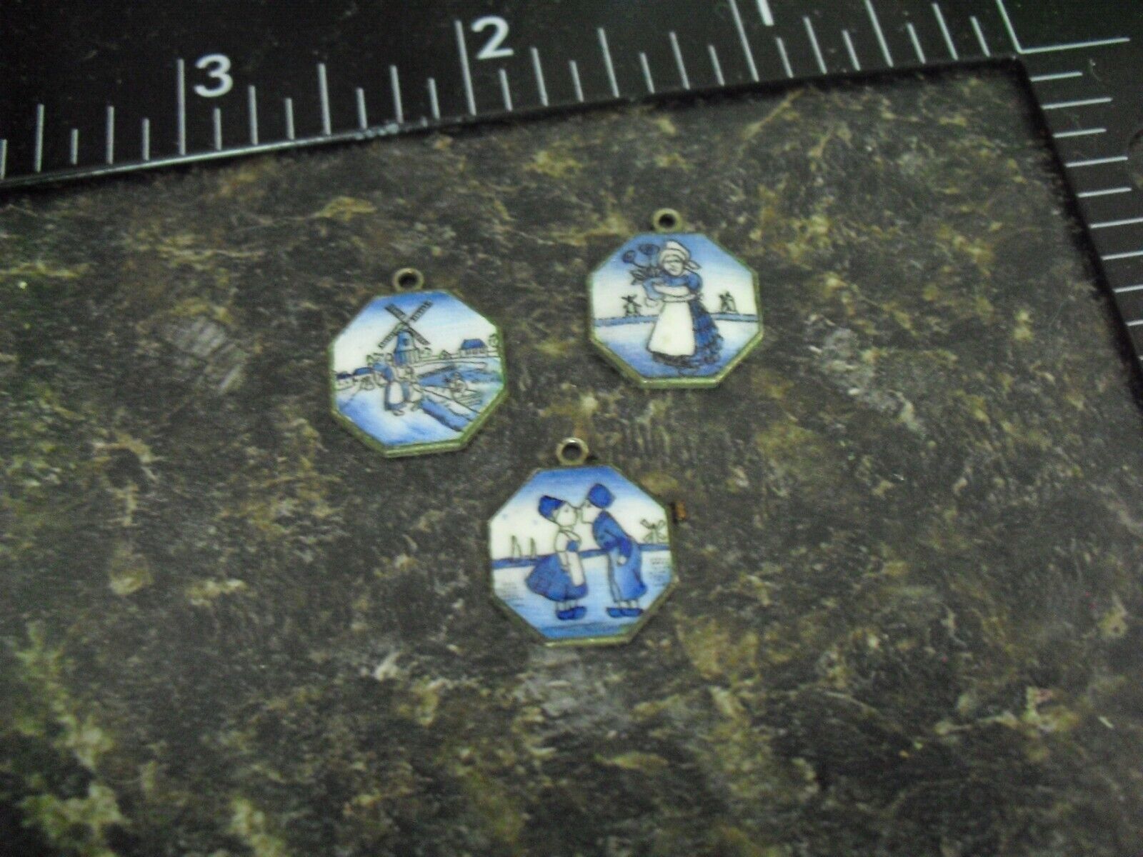 You are bidding on a cool, circa 1970s era, hard to tell, looks older, lot of 3 small Holland theme , silver plated, maybe enameled type front, charms or pendants in the picture. Only 1/2 inch wide. Very good shape with some light wear to the silver plating, maybe could use a polishing. Zoom in for condition.