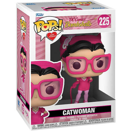 DC Bombshells - Catwoman Breast Cancer Awareness Pop! Figure (Pops! with Purpose) made from vinyl. Funko's latest wave of "Pops! with Purpose"Figures have arrived in support of an incredible cause, giving some of your favourite DC Bombshells a pink makeover to help raise awareness of Breast Cancer Research and Breast Cancer Awareness Month, which is coming up in October. Included in this wave of bombshells are Wonder Woman, Harley Quinn, Catwoman and Supergirl, all dressed in pink with their classic DC Bombshells designs. Support this amazing cause and help raise awareness by adding the new DC Bombhsells Breast Cancer Awareness Pop! Vinyl Figures to your Funko collection.